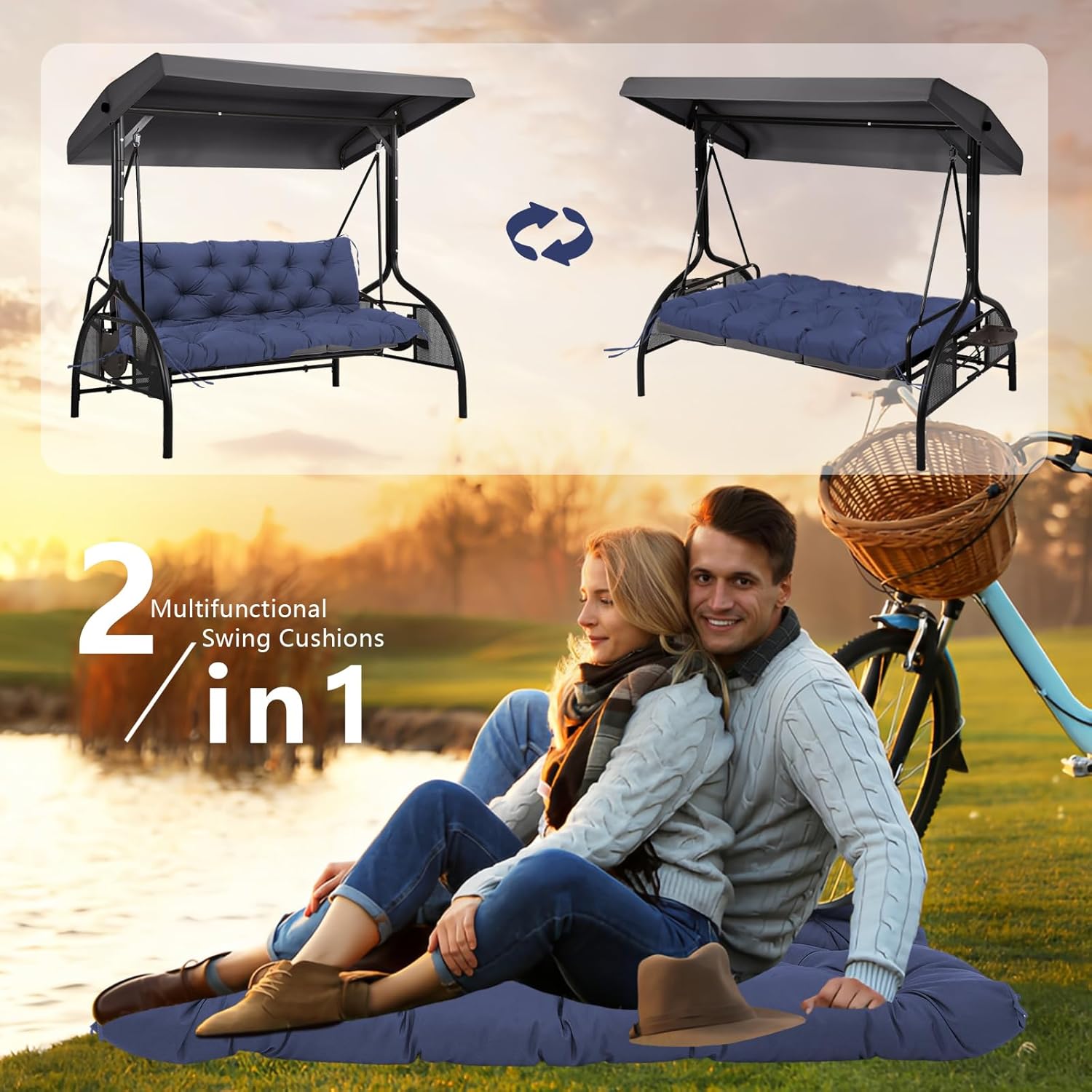 SWING CUSHIONS VERSATILE OUTDOOR ENHANCEMENT: Whether you have a patio swing, outdoor bench, or porch swing, this replacement swing cushion is a versatile addition. Elevate your outdoor space with its stylish design and functional features, making it an ideal choice for patios, gardens, porches, and more