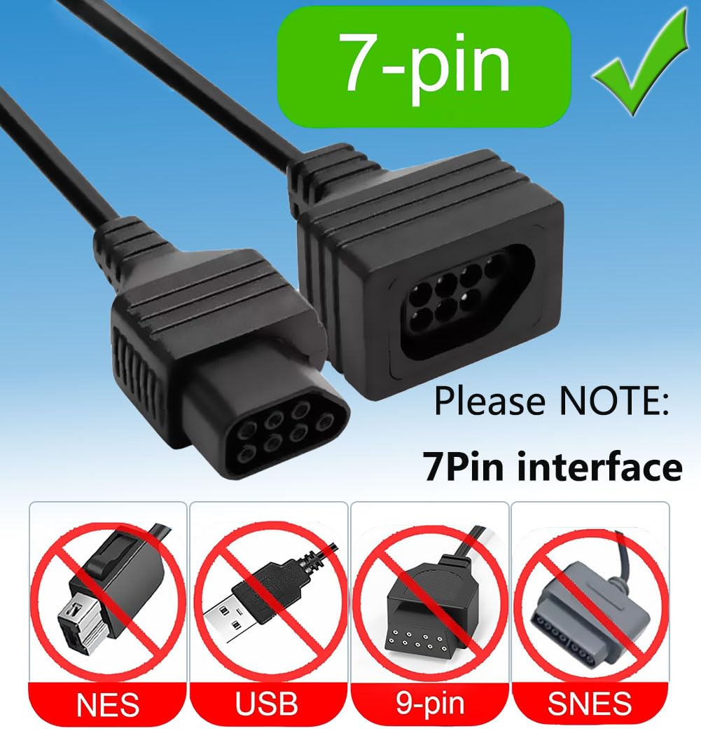 Please check whether it matches your game console before purchasing: The extension cable of the game console controller adopts a 7p hole interface, Compatible with for 1985 version NES controller handle extension cable, not compatible with NES Classic (2016).