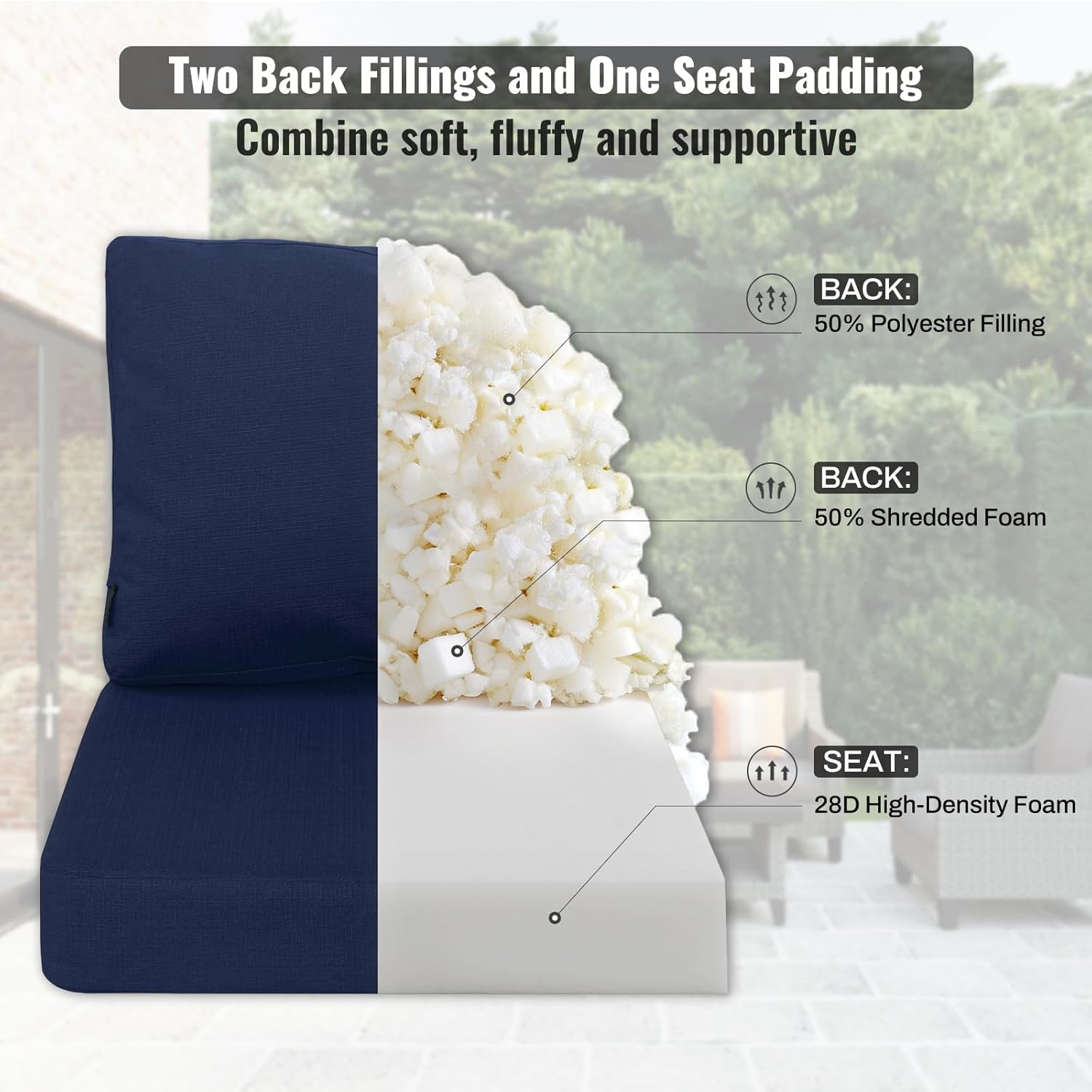 Comfy and 3-Year Fade Resistance Fabric: Different from the commonly used outdoor fabrics which are on the hard style. Our patio cushions use polyester-linen fabric, this fabric has a softer feel and will also make you feel more comfortable sitting. In order for the fabric to maintain its vibrant color even in sunlight, we use solution-dyeing technique that dyes each fiber and is guaranteed to stay colorfast for up to 3 years.