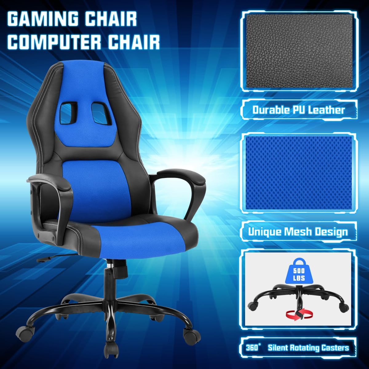 ✔【360-Degree Swivel & Casters】The office chair are designed with human-oriented ergonomic construction that lasts long. And gaming chair have heavy-duty nylon base with 360-degree swivel and nylon smooth-rolling casters, great stability and mobility. 360 degree rotating gaming chair allows dynamic movement.