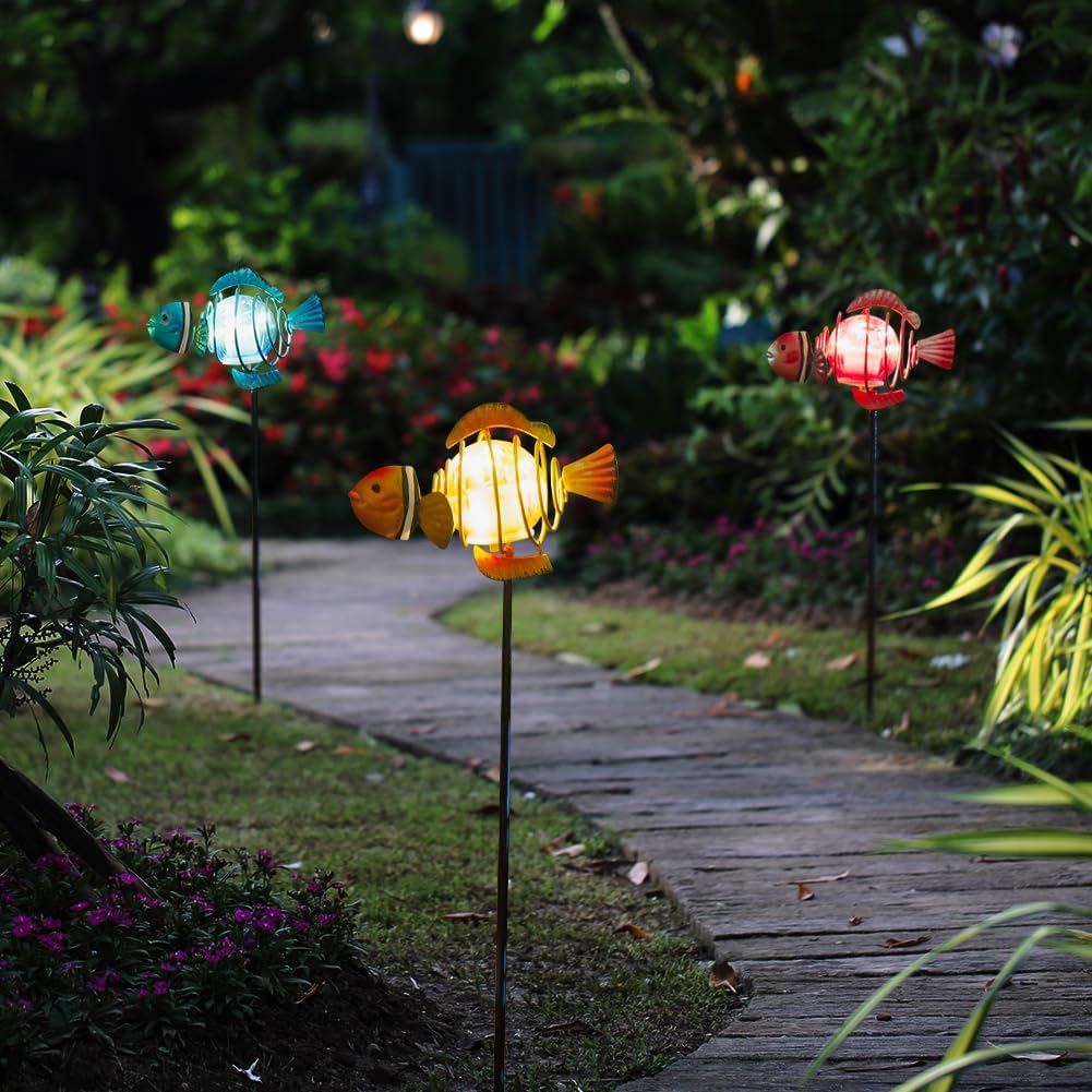 Original Design:This marine life themed solar garden decor is designed in the shape of a clown fish, illuminating your garden with warm light, perfect for outdoor decorations and garden decorations for marine theme lovers