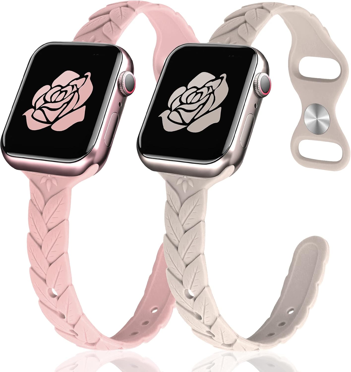 Adjustable size at will:The silicone watch band has multiple adjustment holes that can be adjusted to fit most women wrist sizes.38mm/40mm/41mm Size fits 5.2″-7.2″ (130mm-180mm) wrist; 42mm/44mm/45mm Size fits 5.4″ – 7.4″ (150mm-200mm) wrist.Our cute fancy fadeless Vine engraved silicone replacement strap compatible with Apple Watch 38mm 40mm 41mm 42mm 44mm 45mm 46mm 49mm, for iWatch Series 10/9/8//7/6/5/4/3/2/1, SE Sport, Ultra