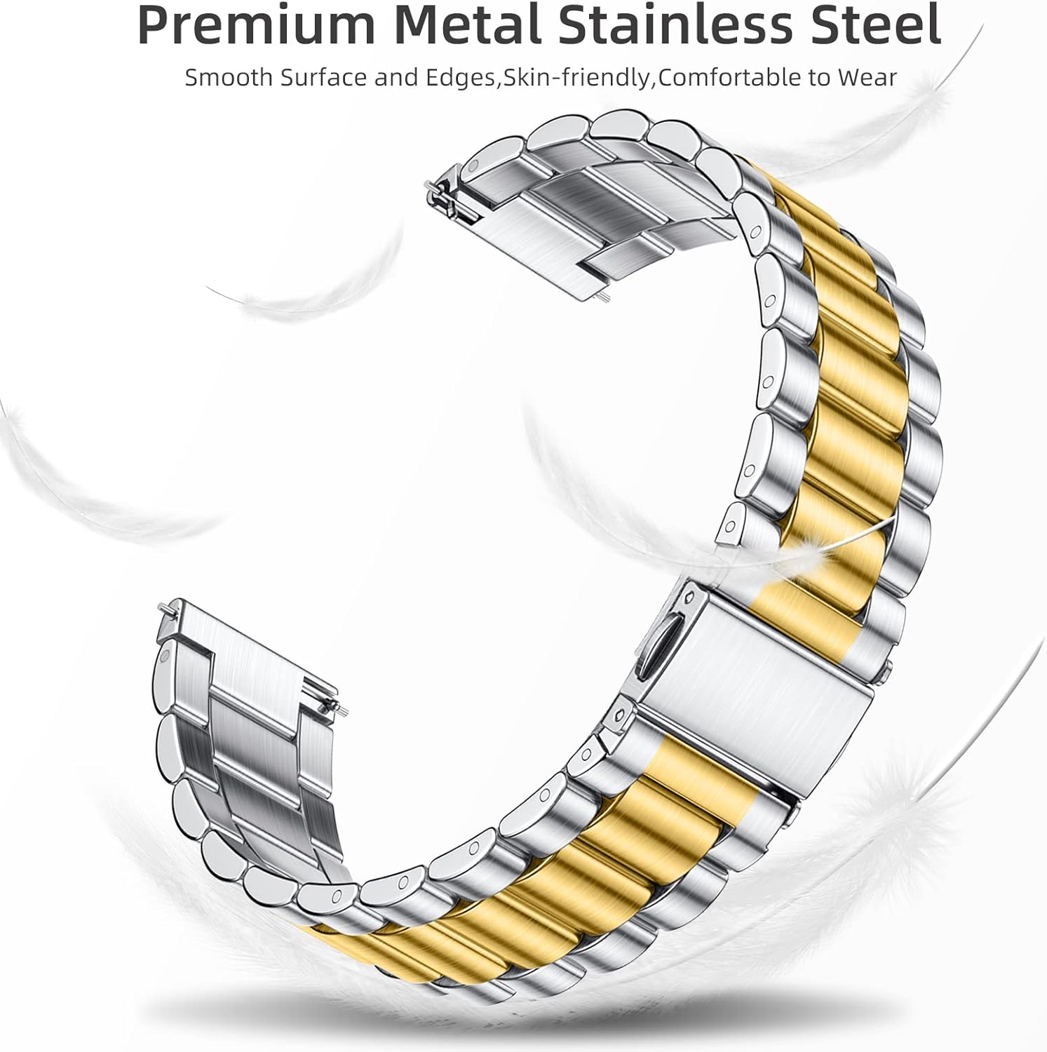 Lerobo for Samsung watch bands made of premium stainless steel material, superb polishing and electroplating process. This stylish and exquisite metal strap will always show your elegance and underline your style for any occasion.