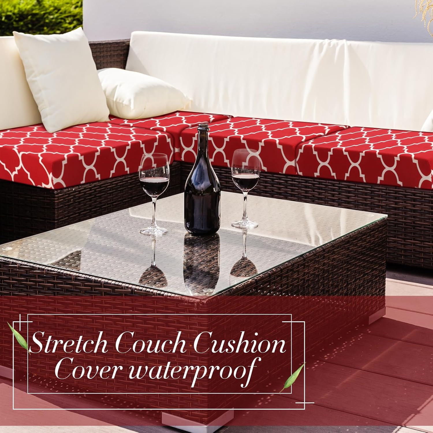 Stretchy, Durable and Waterproof: our patio cushion covers are made of elastic spandex polyester fabric, soft and reusable, not easy to break or fade; They will fit most sofas and chair backs because of quality elasticity; Our outdoor cushion covers are water resistant, the water droplets can be quickly whisked away by towel
