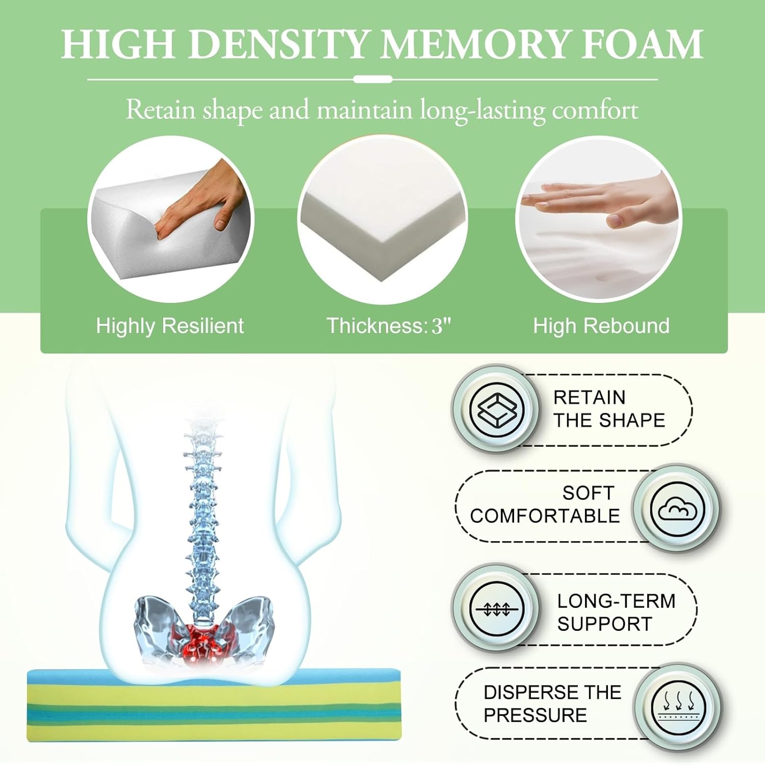 HIGH DENSITY FOAM – Our cushions for outdoor furniture are filled with a whole piece of 3 inch thick quality sponge, which is soft yet supportive, providing effective cushioning and relieving pressure on your hips, tailbone and lower back. By the way, these foam outdoor seat cushions are high rebound and durability, will not easy to deform after sitting for long periods of time