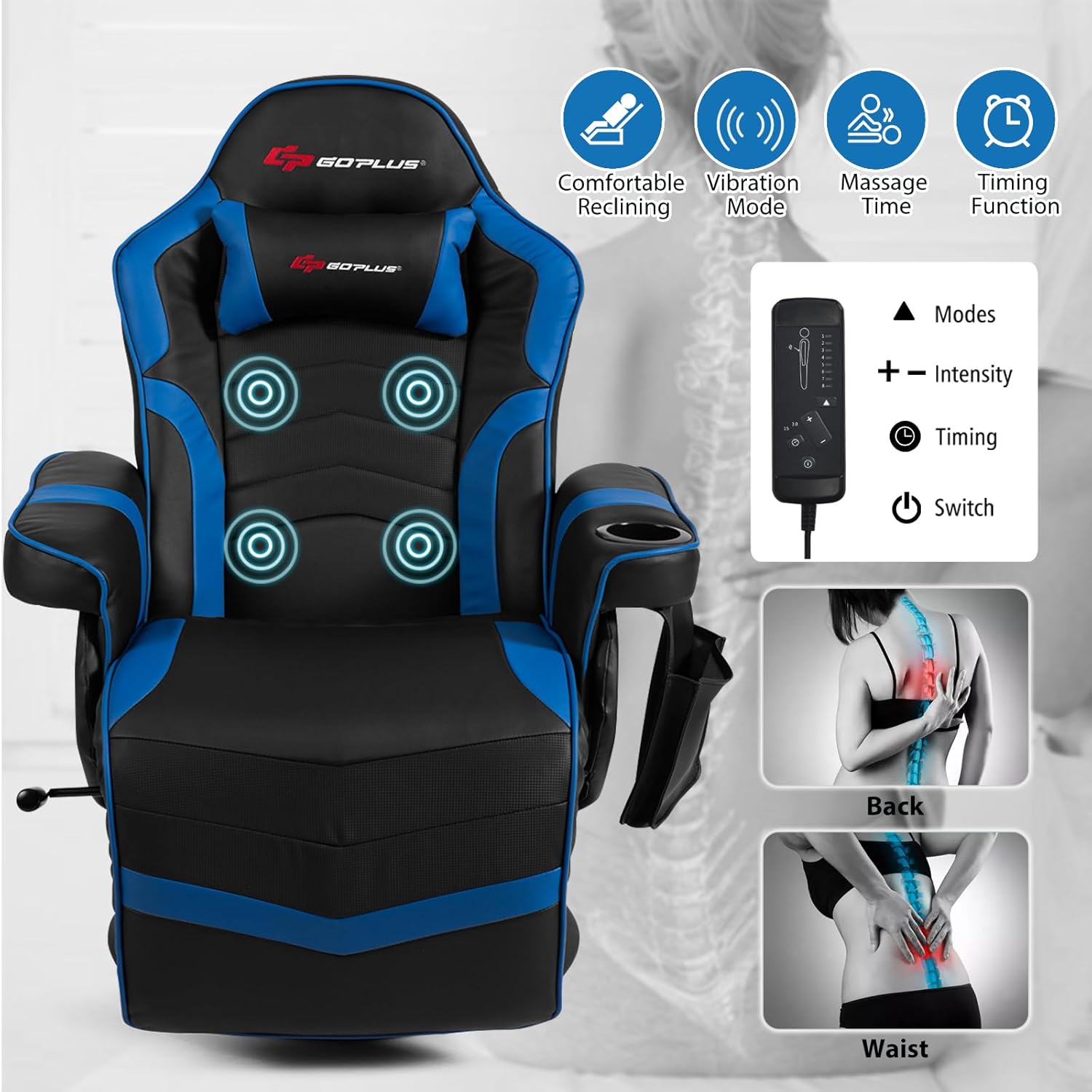 4 Lumbar Massage Spots, 8 Massage Modes
