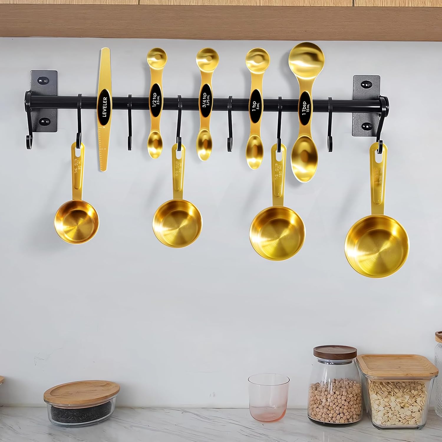 13pcs Gold Measuring Cups and Spoons Set, 4 Stainless Steel Measuring Cups & 8 Magnetic Measuring Spoons Set & 1 Leveler for Kitchen Cooking & Baking