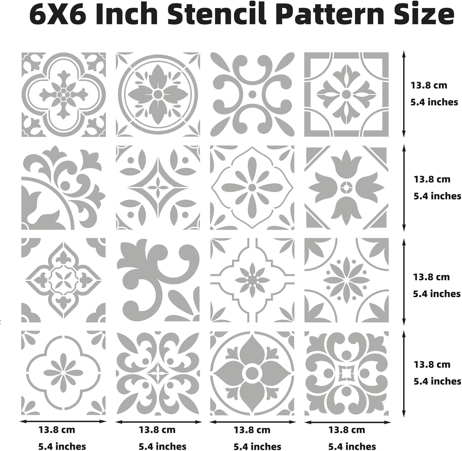 16-Pack Spanish Tile Stencil Set (6X6 Inch) Authentic Patterns for Floor and Wall, Reusable Tile Stencils for Painting on Floors, Furniture, and Canvas, DIY Spanish Talavera Home Décor