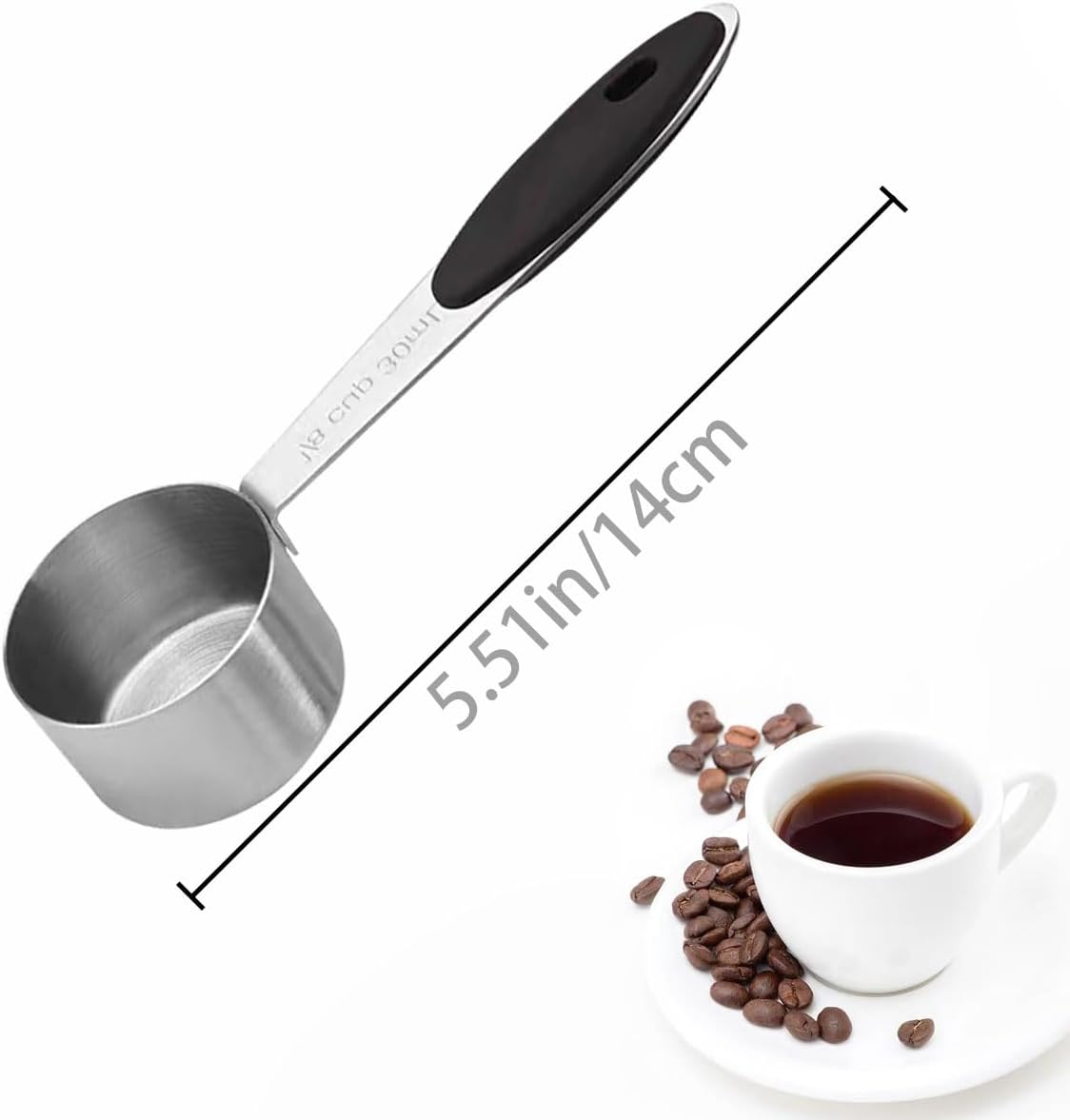 2 PCS 1/8 Cup Stainless Steel Measuring Scoops Coffee Measuring Scoop 30ML Small Coffee Scoop Measuring Cup with Black Silicone Handle Large Capacity And Comfortable Hand Feeling Tablespoon