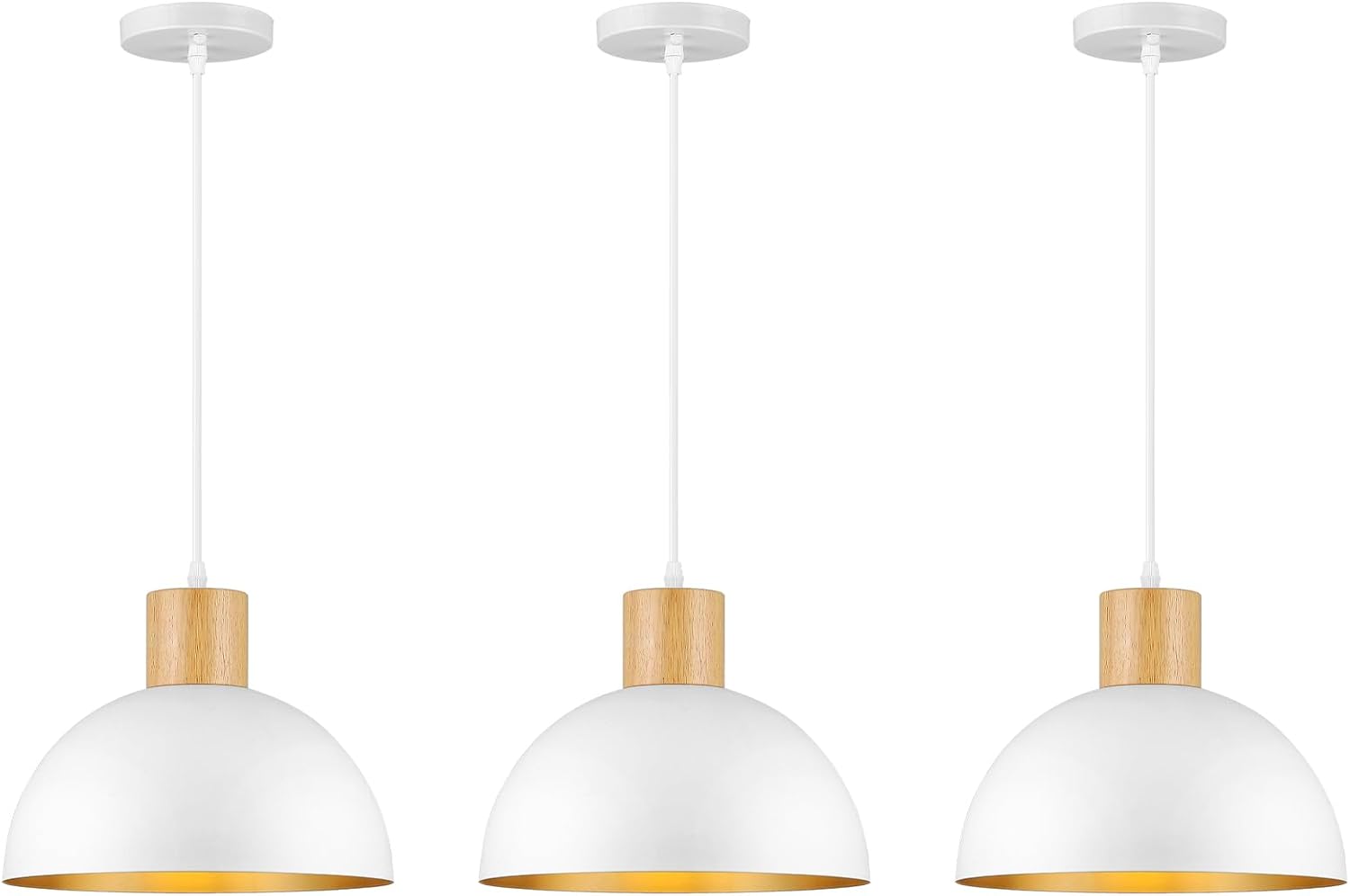 3 Pack White Pendant Light, Wood Dome Pendant Lights Lights Fixtures Adjustable Modern Hanging Lighting,for Kitchen Island Dining Room Farmhouse Sink Bar Restaurant