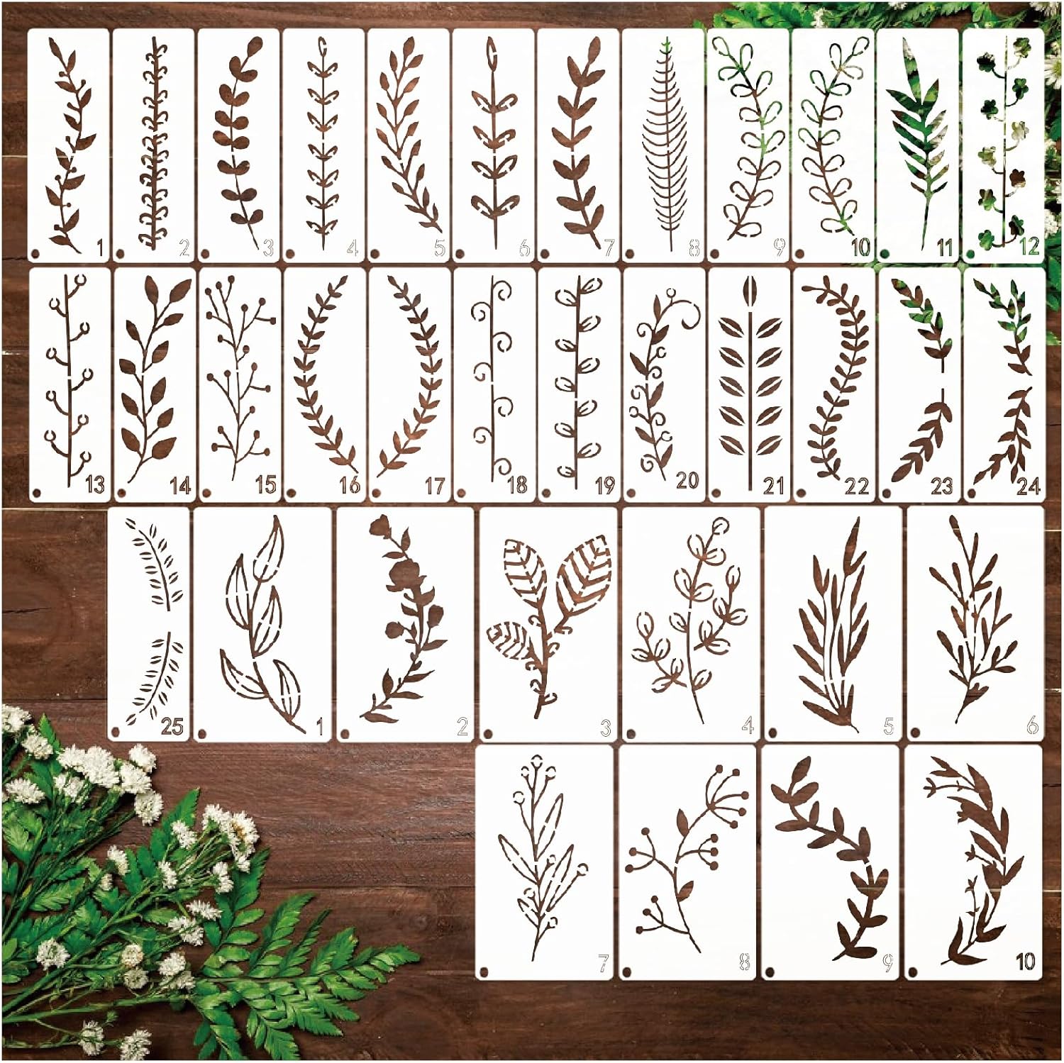 35 Pack Leaf Stencils for Painting on Wood, Leaves Vine Stencil Spring Nature Template for DIY Craft Wall Fabric Rock Chalkboard Sign School Scrapbook Projects (Leaf)