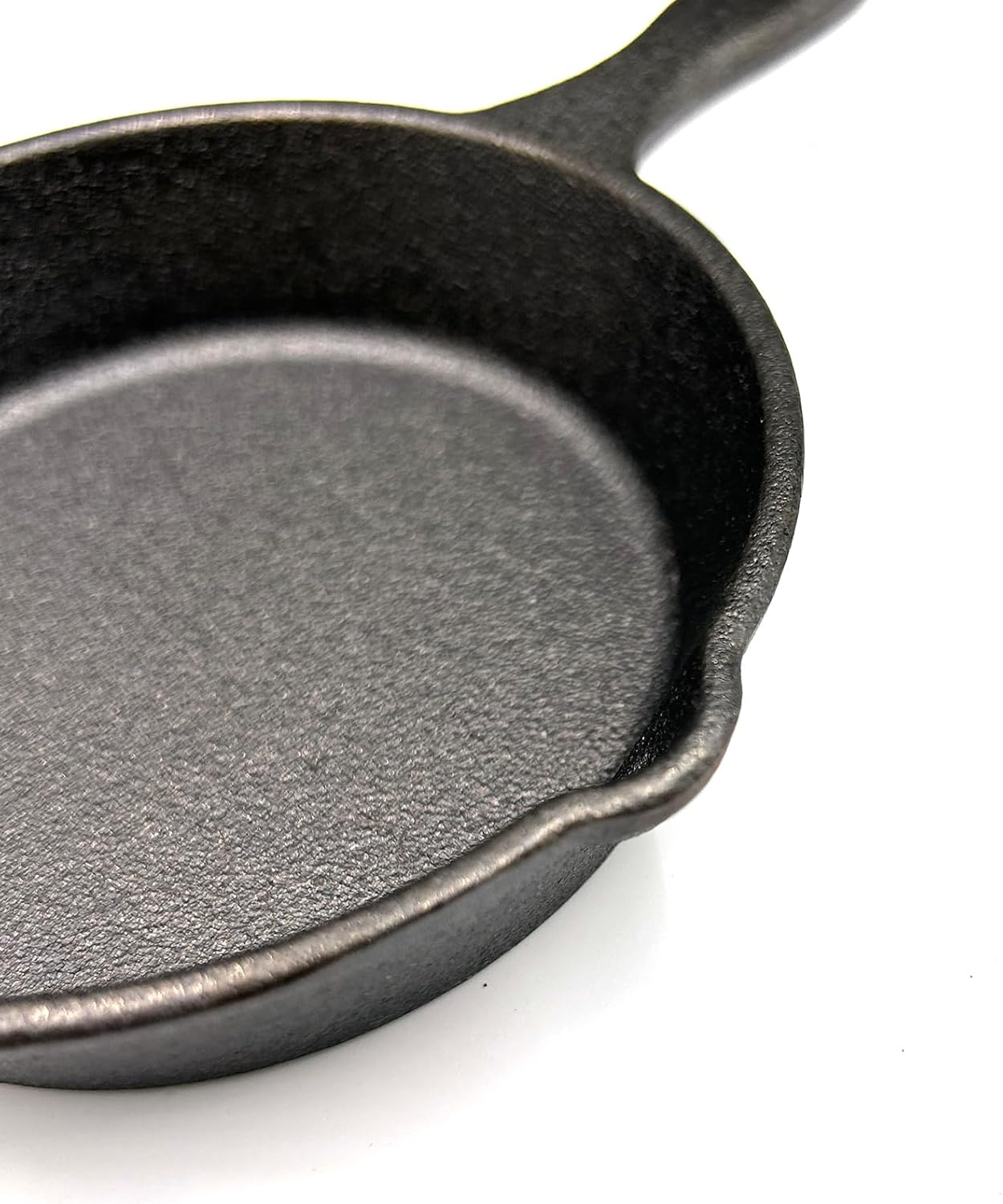 Hand Polished Design: The 4-inch cast iron cookware has a unique surface texture that is slightly rougher than steel cookware but remains non-stick; easily cleaned with mild soapy water and a sponge, the double drip spouts for easy draining of excess oil and water