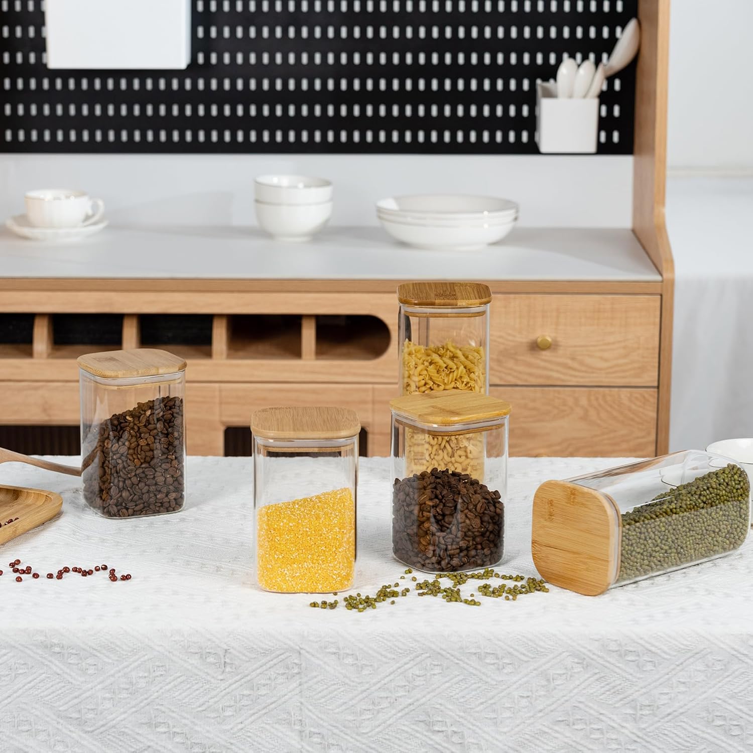 [Transparent jar]- Transparent square glass containers make your items visible, allowing you to clearly see the contents of the glass storage jar and the remaining stock, and then you can easily replenish the food that is about to run out.