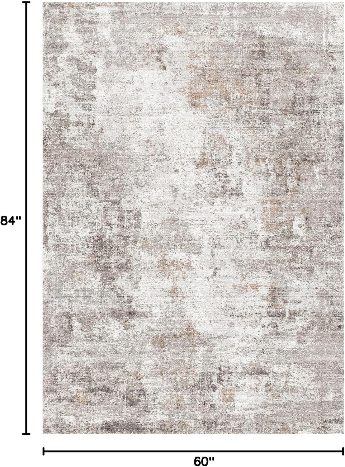 Key Attributes: Size: 5′ x 7′ (60 in. x 84 in.) | Thickness:Low pile, Thin | Color: Beige, Grey, Brown | Material: Soft, Stain-Resistant, Durable Faux Cashmere | Backing: Non-Slip Rubber | Care Instructions: Machine Washable