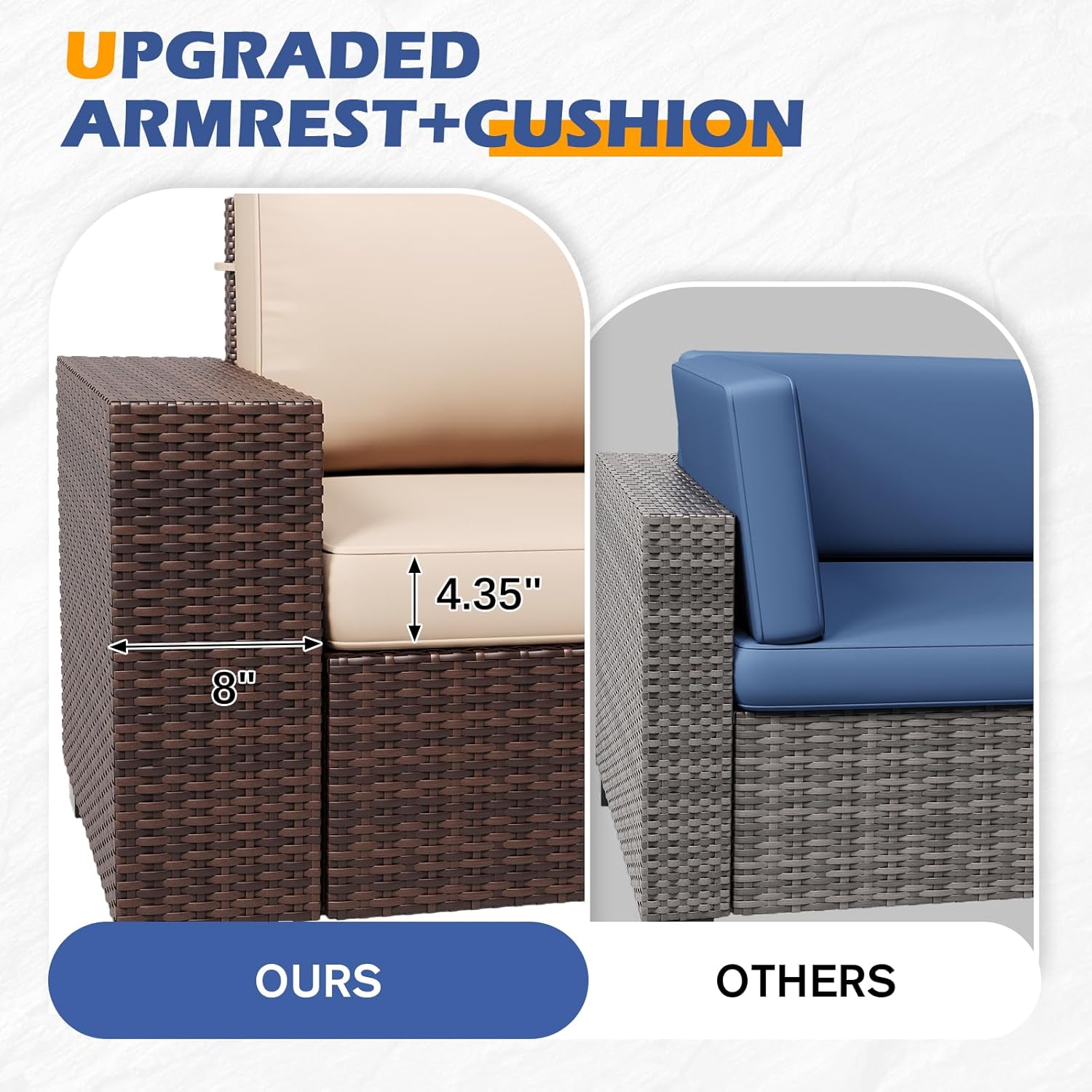 【Waterproof Cover Included】: Your patio sofa set now comes with a waterproof cover made from Oxford cloth. Enhanced with PVC coating on both inner and outer layers, it ensures superior waterproofing. Bid farewell to worries about your outdoor furniture set getting wet in the rain.