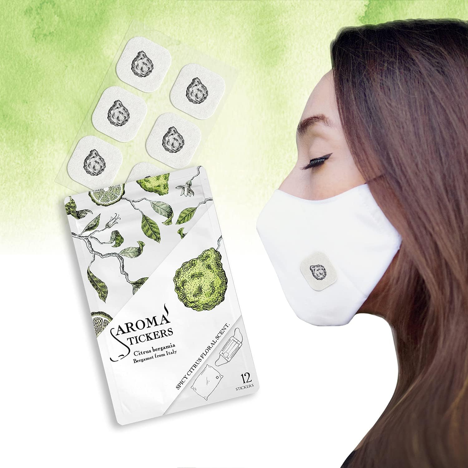 AROMA STICKERS® (Bergamot, Pack of 1-100% Natural Essential Oil Scented Mask Stickers for Face Mask & Pillow (12 stickers/pc) -Pure Essential Oil Scented Mask Patch/Personal Aroma/Relaxing