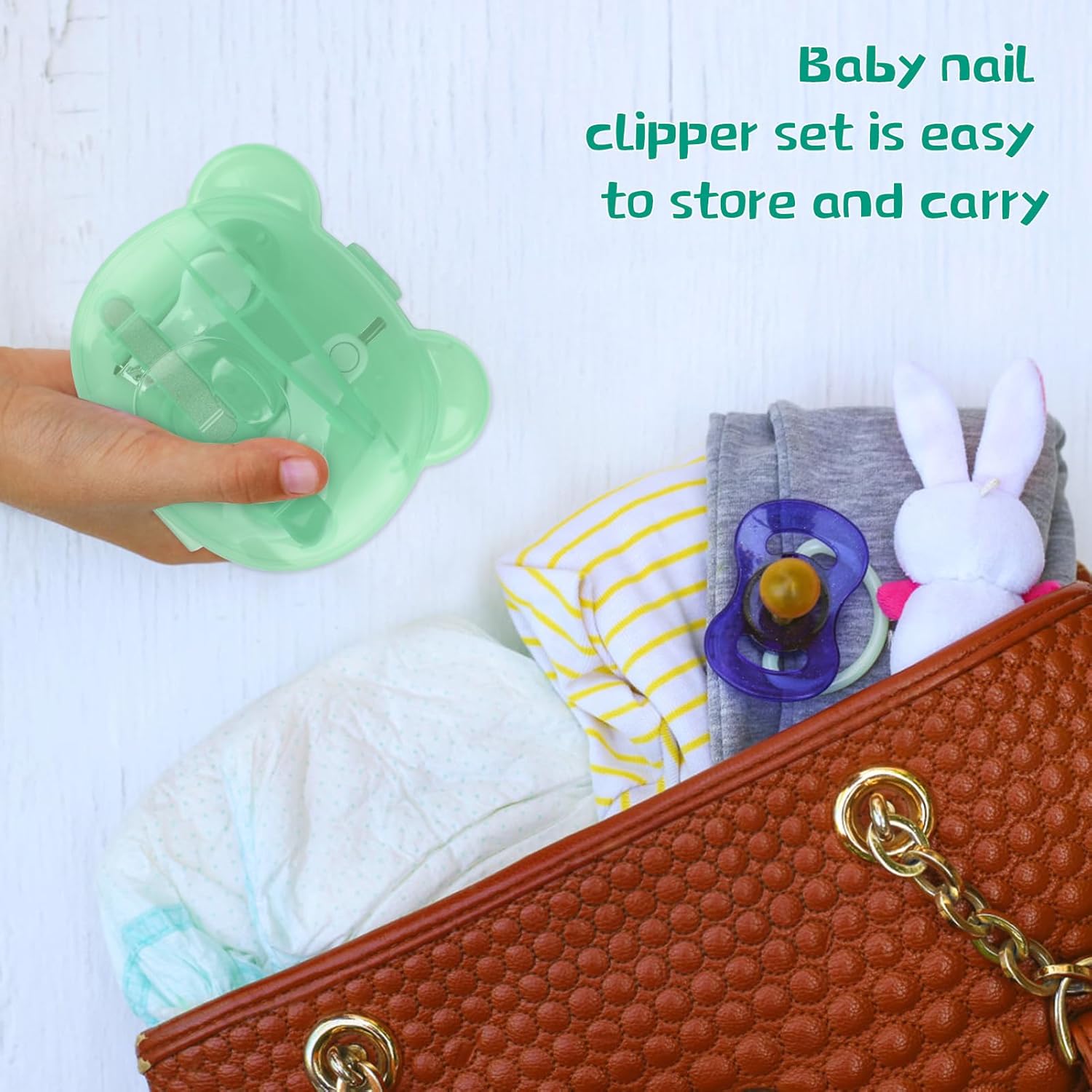 Baby Nail Kit, Baby Manicure Kit and Pedicure Kit with Cute Bear Shape Case, 4-in-1 Kit with Baby Nail Clipper, Scissor, Nail File & Tweezer for Newborn, Infant, Toddler, Mothers Day Gifts(Green)
