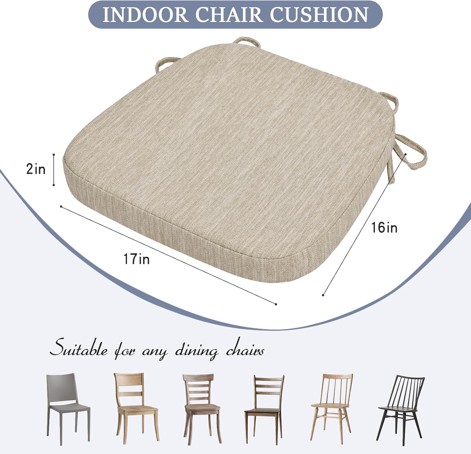 [Product Dimensions and Compatibility] The cushion measures 17 inches wide, 16 inches deep, and 2 inches thick, fitting most chair surfaces. It is suitable for various chairs, including dining chairs, kitchen chairs, folding chairs, rocking chairs, and bar stools. Its solid-color design offers a clean and sophisticated look, complementing a wide range of interior styles seamlessly.