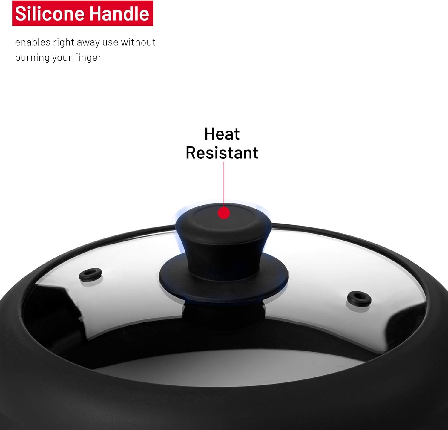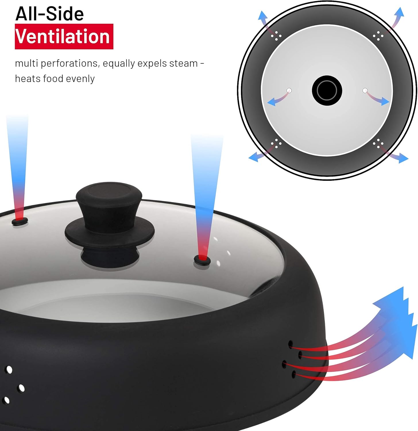 Bezrat Vented Glass Microwave Plate Cover | Large 12-inch Splatter Guard Lid | Firm Grip Silicone handle | 100% Food Grade | Dishwasher Safe (Black)