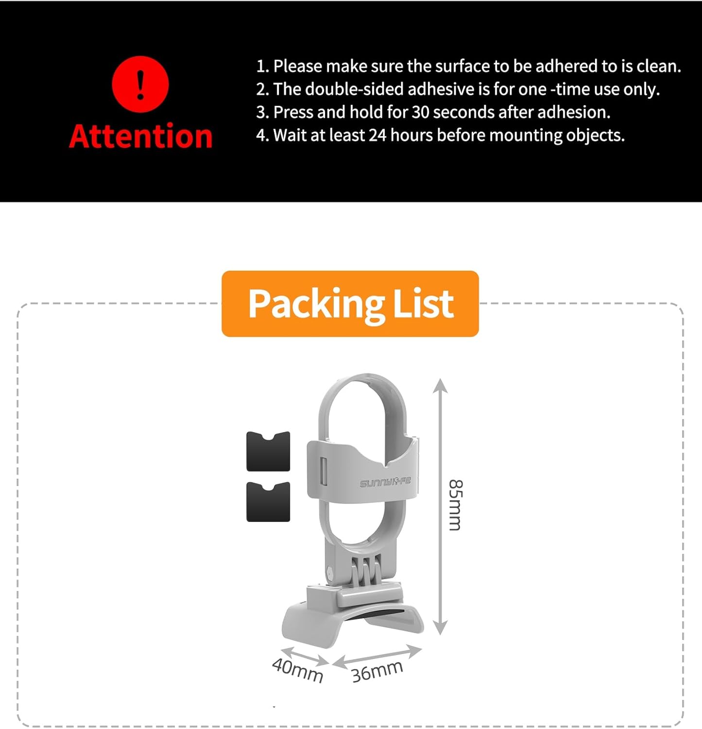 Packing list: 1 Set Adapter Mount Base(excluding go 3/go 3S, NEO drone and other parts)