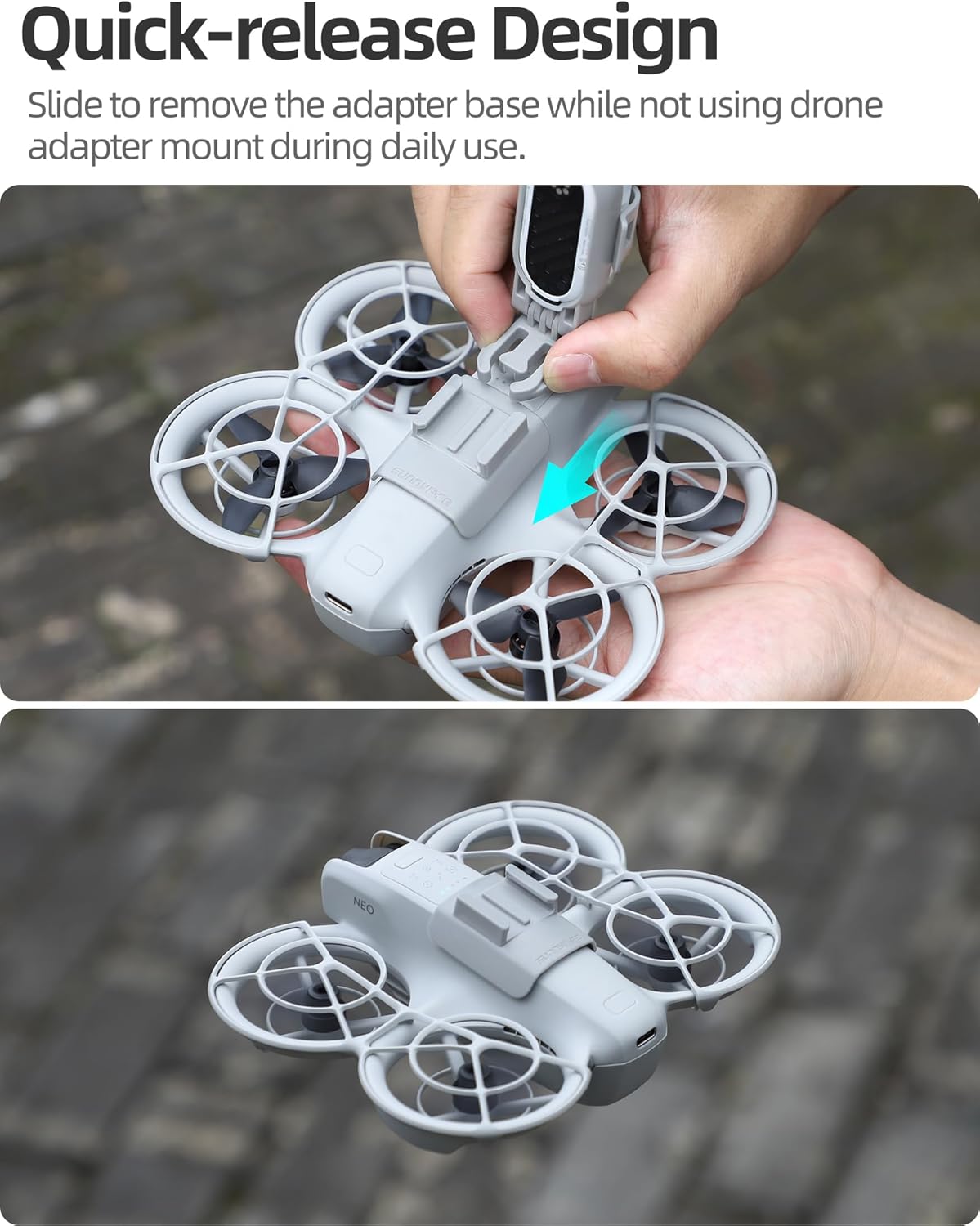 Quick-release design, slide to remove the adapter base while not using drone adapter mount during daily use
