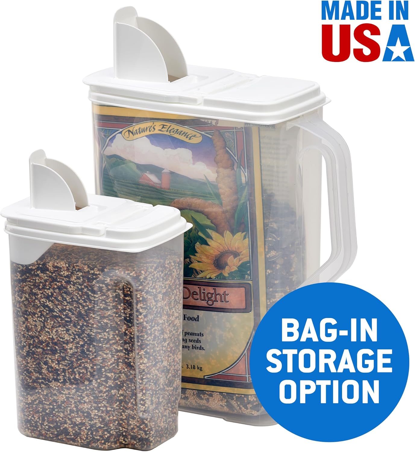 Buddeez Pet Food Storage Containers – 2 Count Bird Seed Dispenser with Pour Tight Lids and Easy Pour Spouts, 8 Qt and 3.5 Qt, Bird Seed Storage for Small and Large Feed, BPA Free