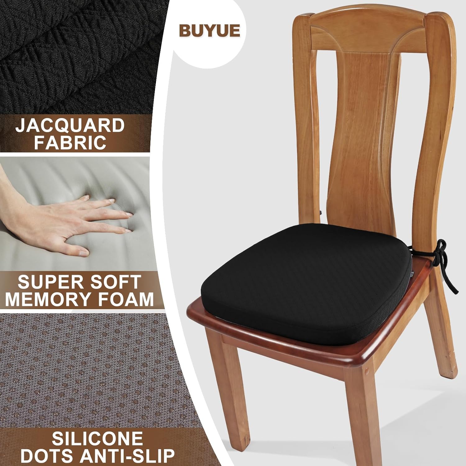 Be the first to review “BUYUE Luxury Memory Foam Chair Cushions 6 Pack, Jacquard 16″ U-Shape Comfortable Dining Chair Pads, Removable Slip Resistant Kitchen Chair Seat Cushions (Set of 6, Black)”