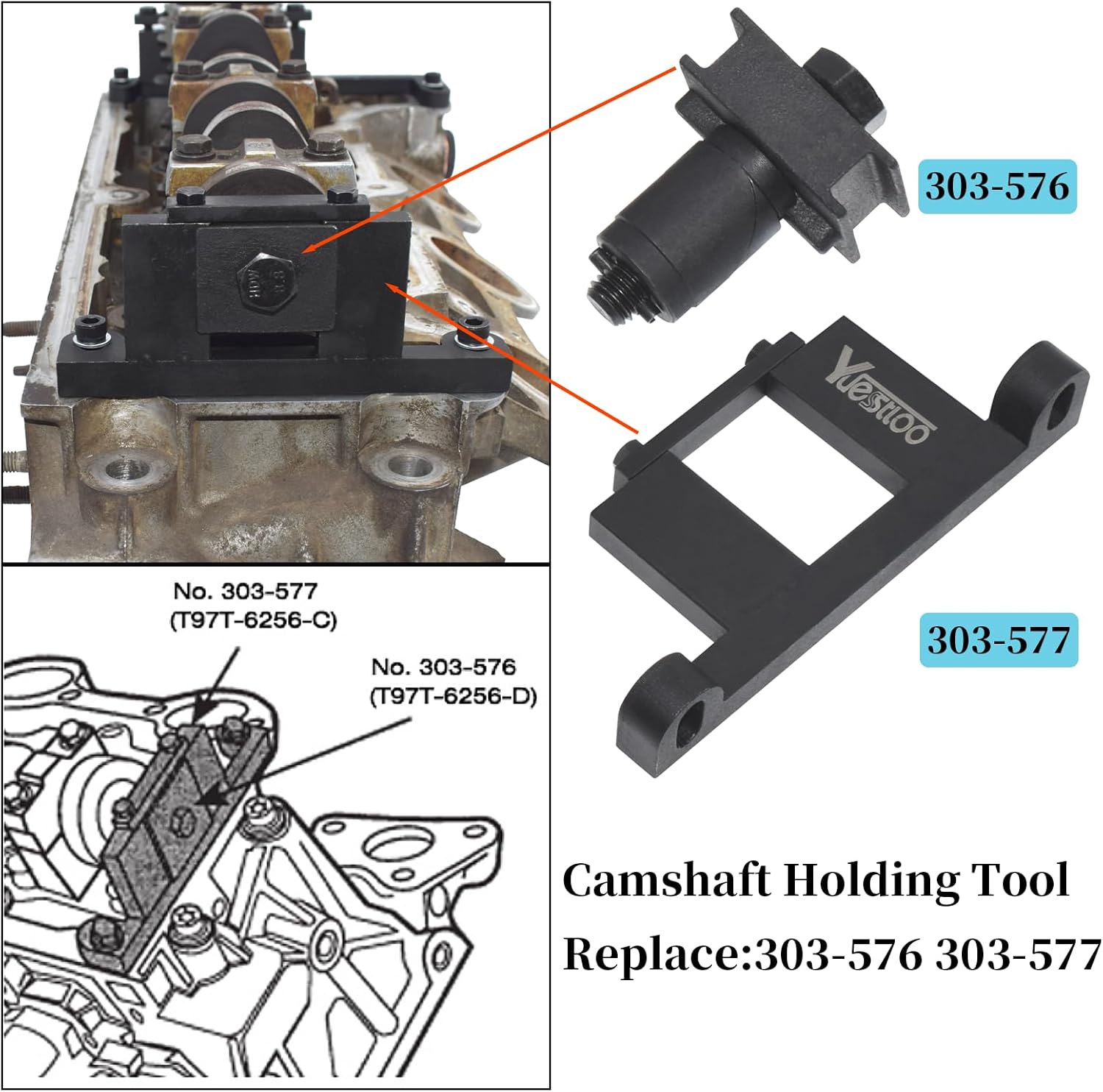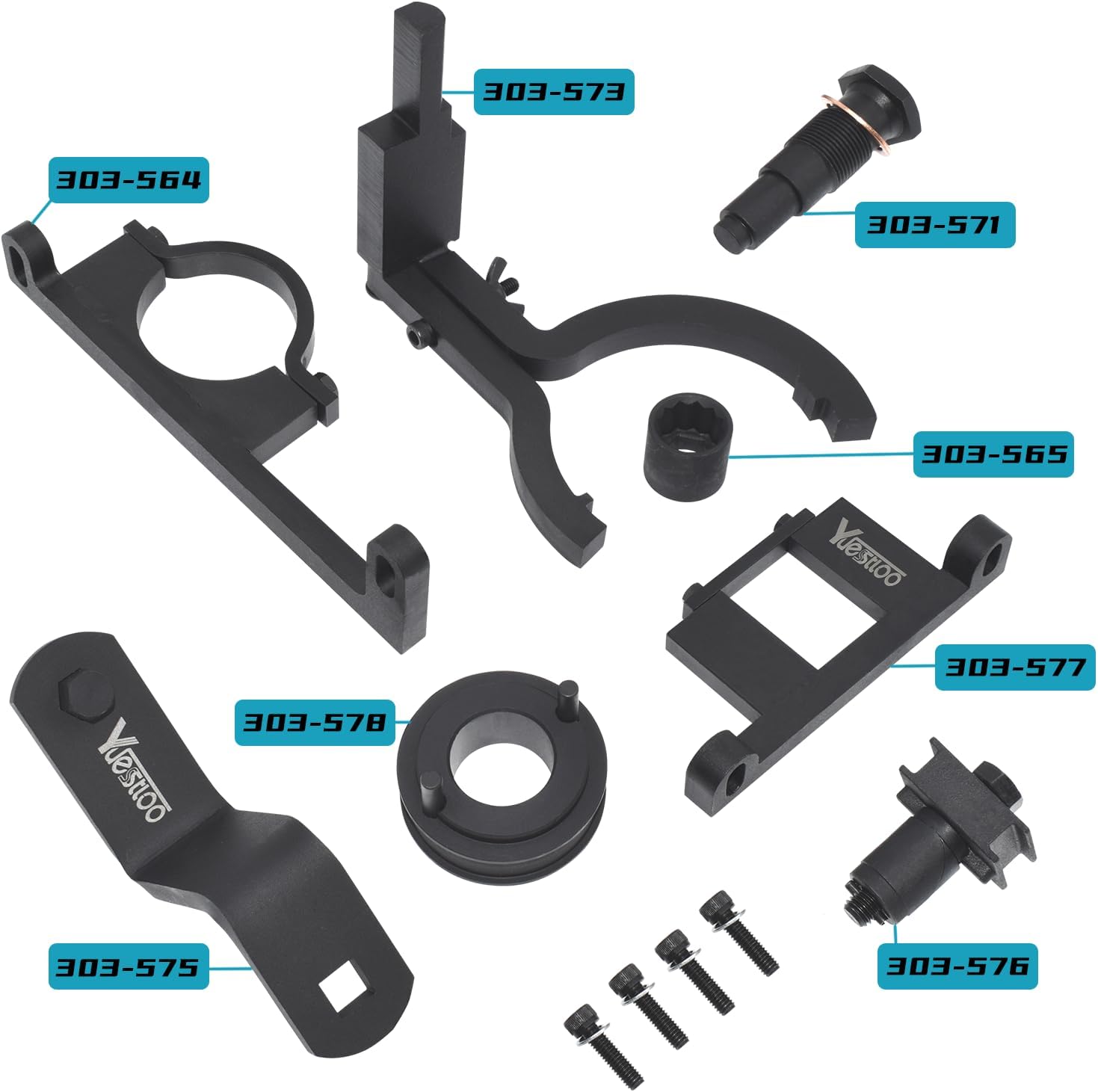 Yuesstloo ford 4.0 timing tool kit is designed for the chain driven 4.0 direct injection petrol engines which fitted with variable valve timing. Used for the proper installation of timing kits, especially for the accuracy of synchronization of the time in the engine.