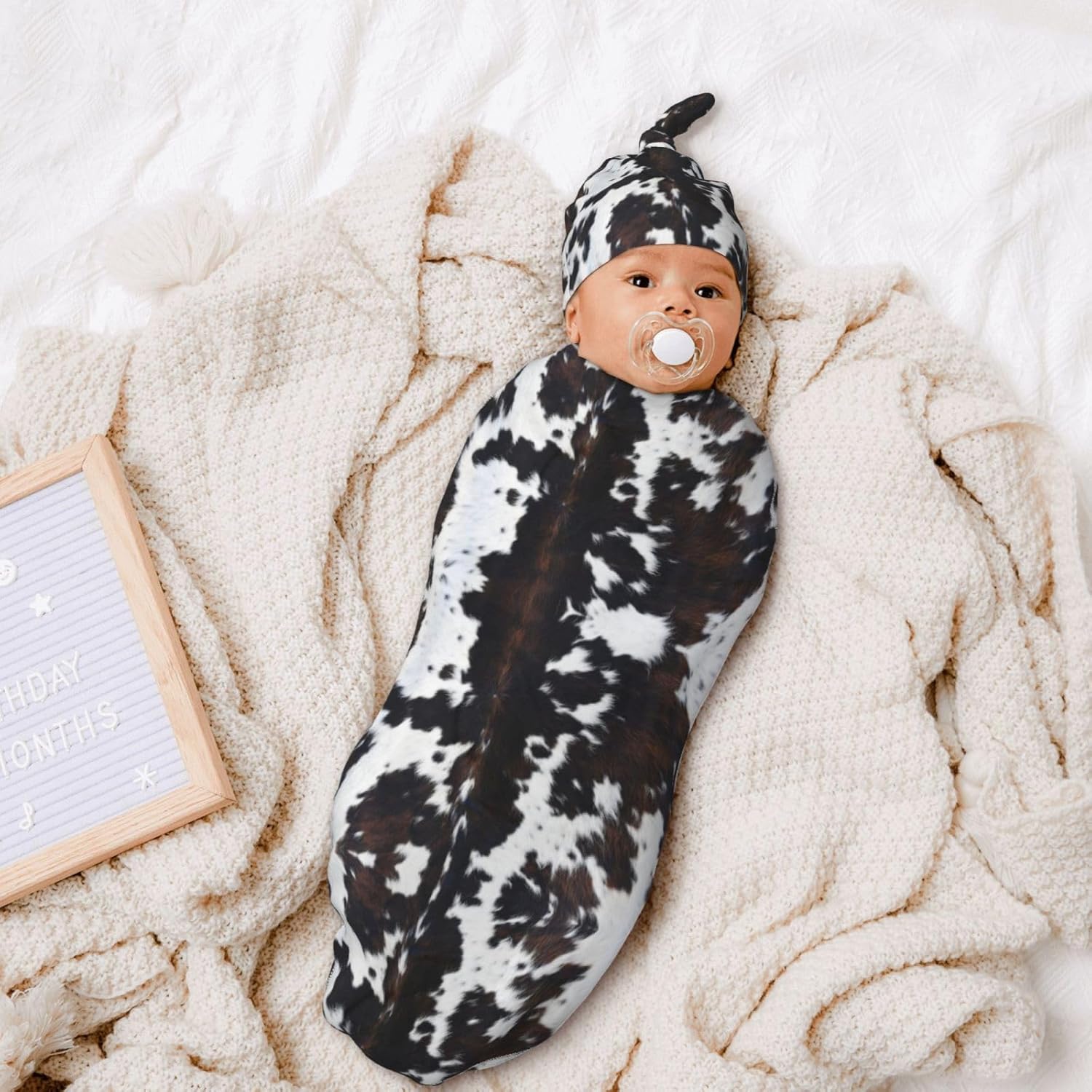 Newborn Receiving Blanket Features:1. Made Of Super Soft And Comfortable Fabric. 2. No Zippers, No Snaps. 3. Long-Lasting, Not Fade, No-Pill Washing. 4. Suitable For Baby Boys/Girls Photo Prop, Photography Outfit, Holiday Gift Etc Any Special Occasion. 5. Our Swaddle Wrap Size 11.4 X 21 Inch , Hat 6.3 X 13 Inch, Suitable For 0-6 Month Unisex Babies. Swaddling Stuff With Self-Soothing, Get Longer Sleep, New Born Essentials. Easy To Clean And Dry Quickly, Machine Or Hand Wash.