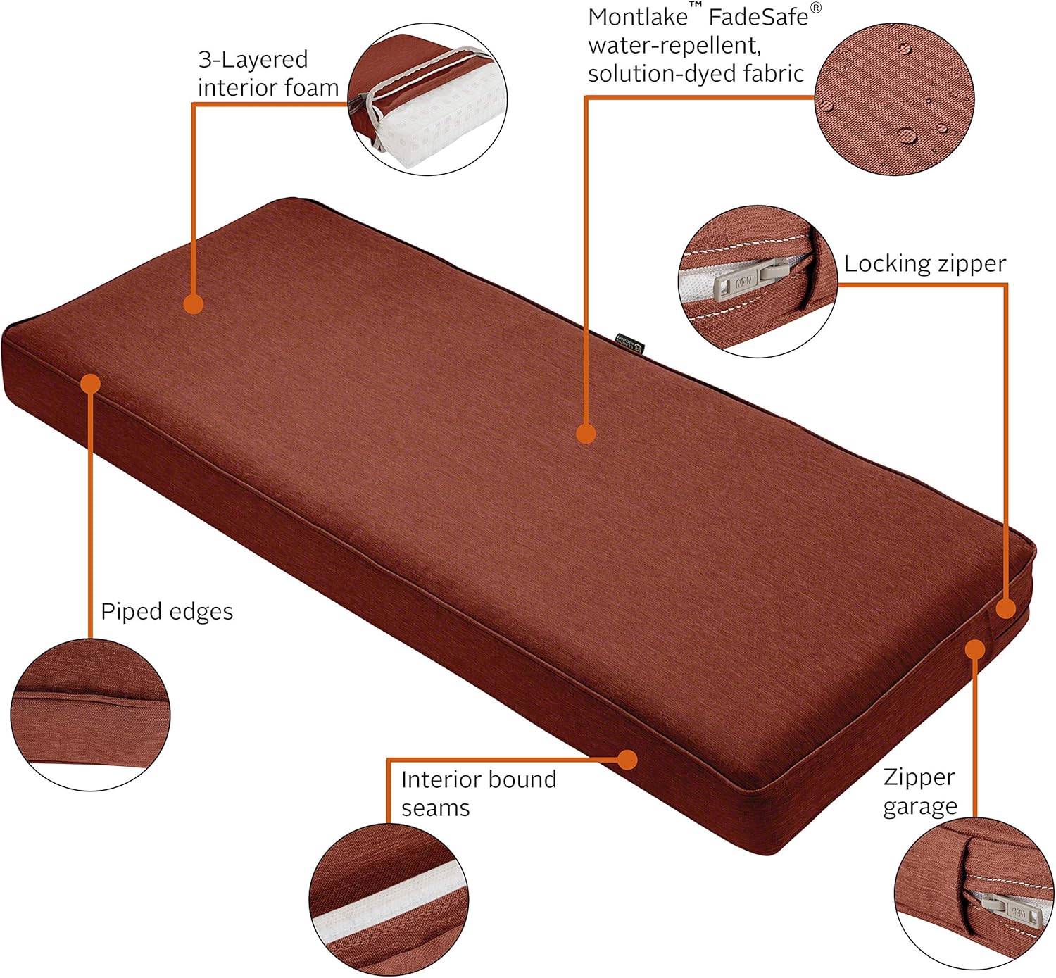 Classic Accessories 62-044-HHENNA-EC Montlake FadeSafe Water-Repellent 54 x 18 x 3 Inch Outdoor Bench Cushion, Heather Henna