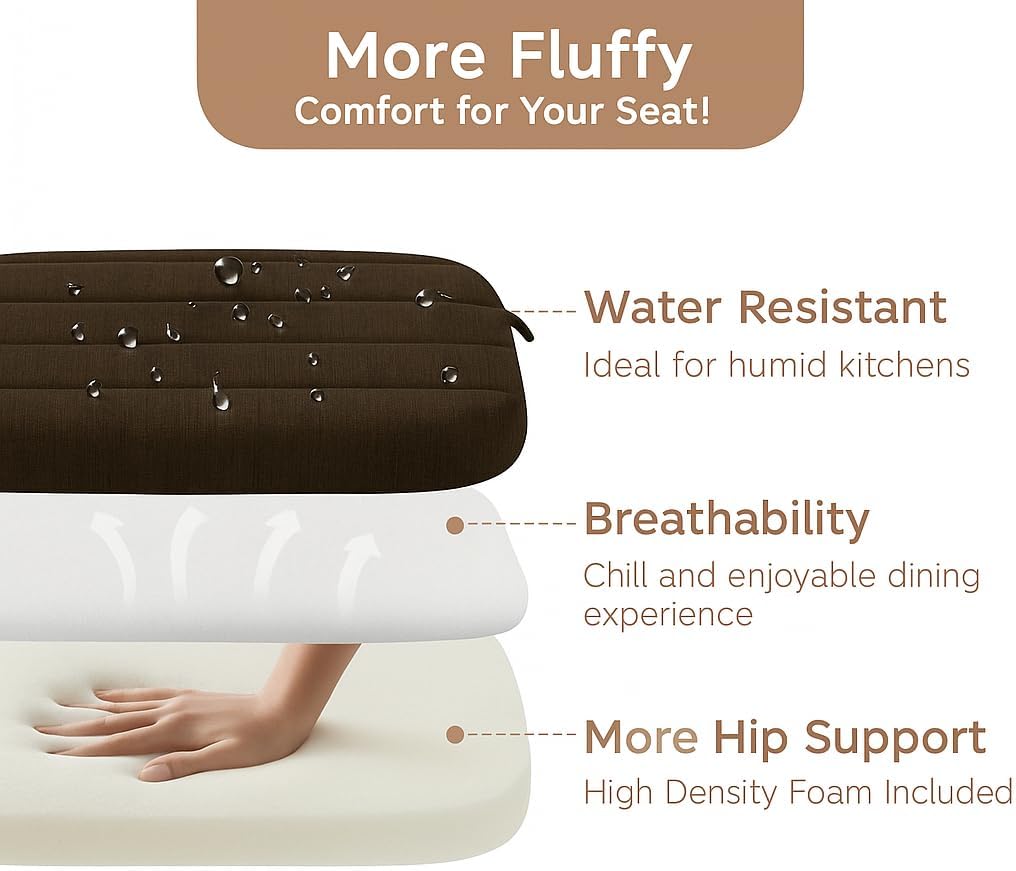 Codi Dining Chair Cushions Set of 4 – Foam Pads for Kitchen and Indoor Room Chairs 2” Thick – 16×17 inch, Washable Seat Cushions with Ties – Brown, 4 Pack