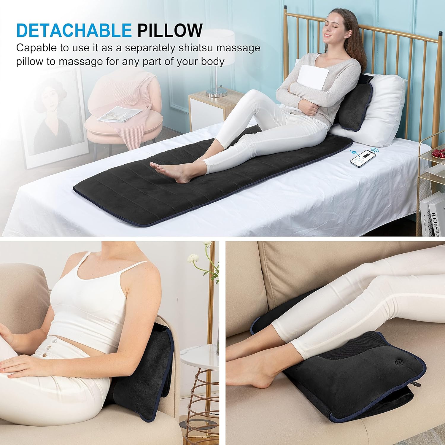 New APP-controlled massage mat: The new APP-controlled massage mat provides you more options than on the remote control (favorite mode), easily collection of the most suitable options include massage section, heating level, massage intensity,vibration,from the existing list to add the favorite.The massage mat technology provides a premium interactive experience and customizable massage time.