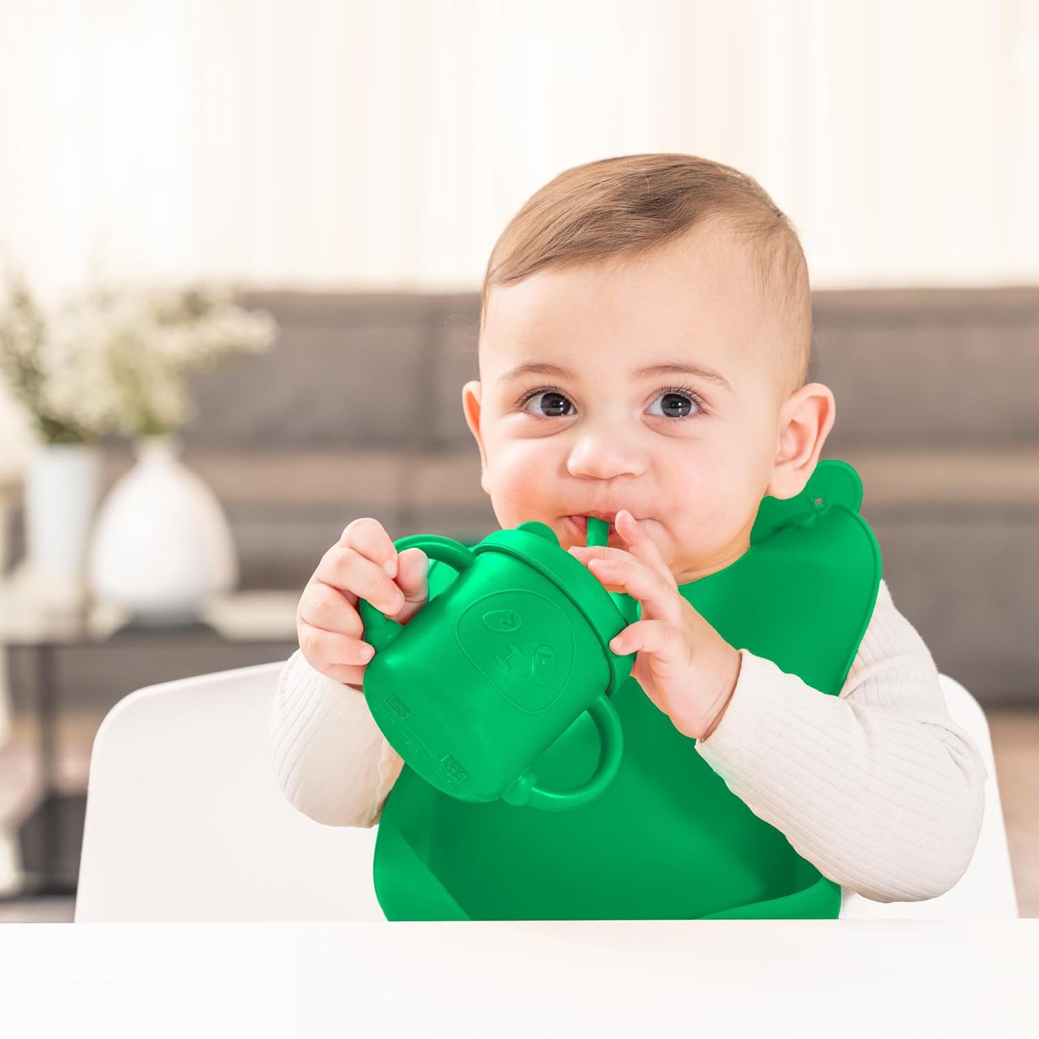 Complete Silicone Baby Led Weaning Supplies Set – Animal-Themed 15-Piece Toddler & Baby Feeding Essentials with Bib, Suction Plate & Bowl, Forks, Spoons, Sippy Cup, Straws & More (Jolly Green)