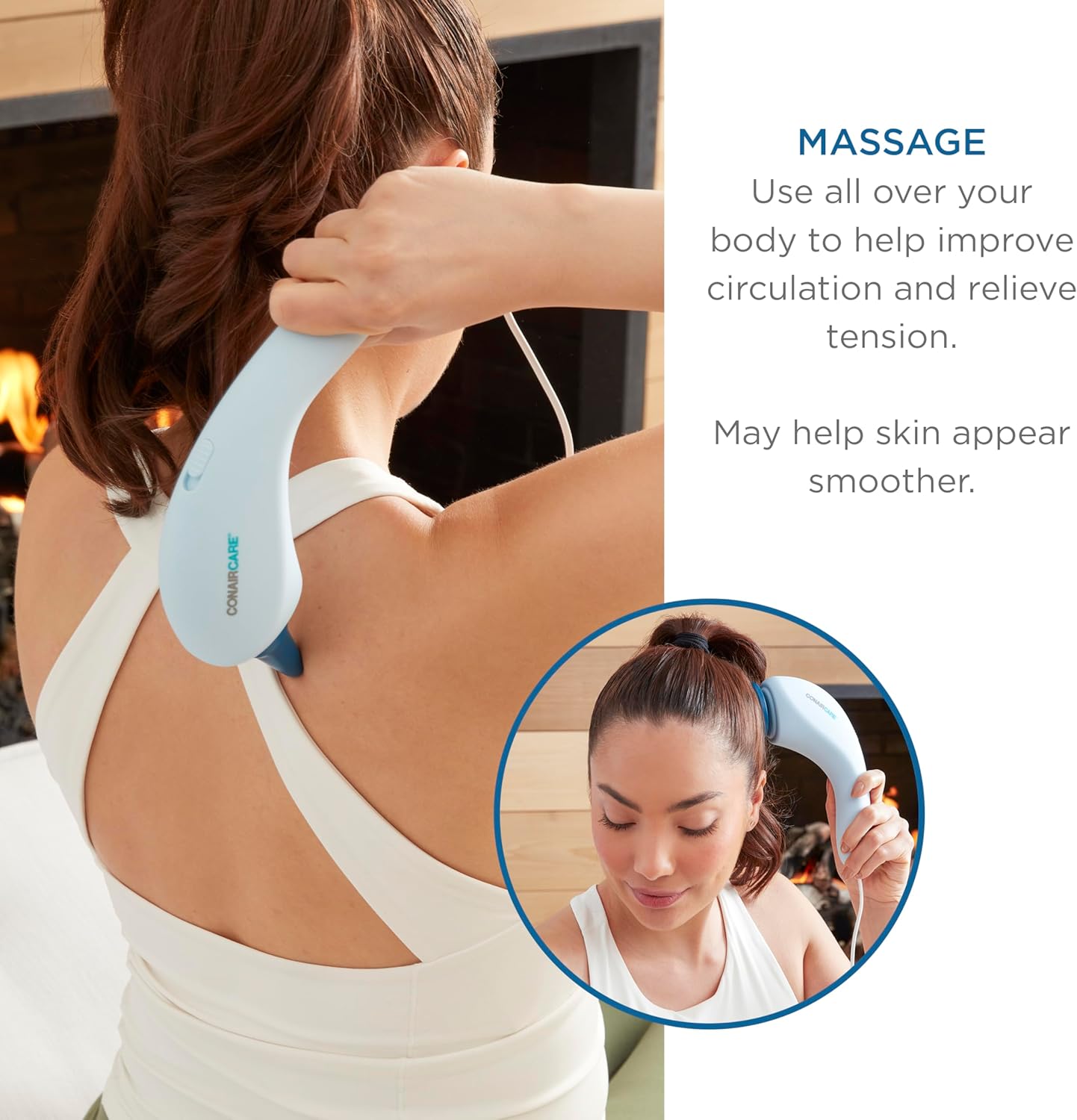Relax and Release Tension: Perfect for a relaxing facial massage to help improve circulation, massage may also help skin to appear smoother. Get gentle tension relief for sensitive areas and use more powerful vibration for reaching deeper into muscles.