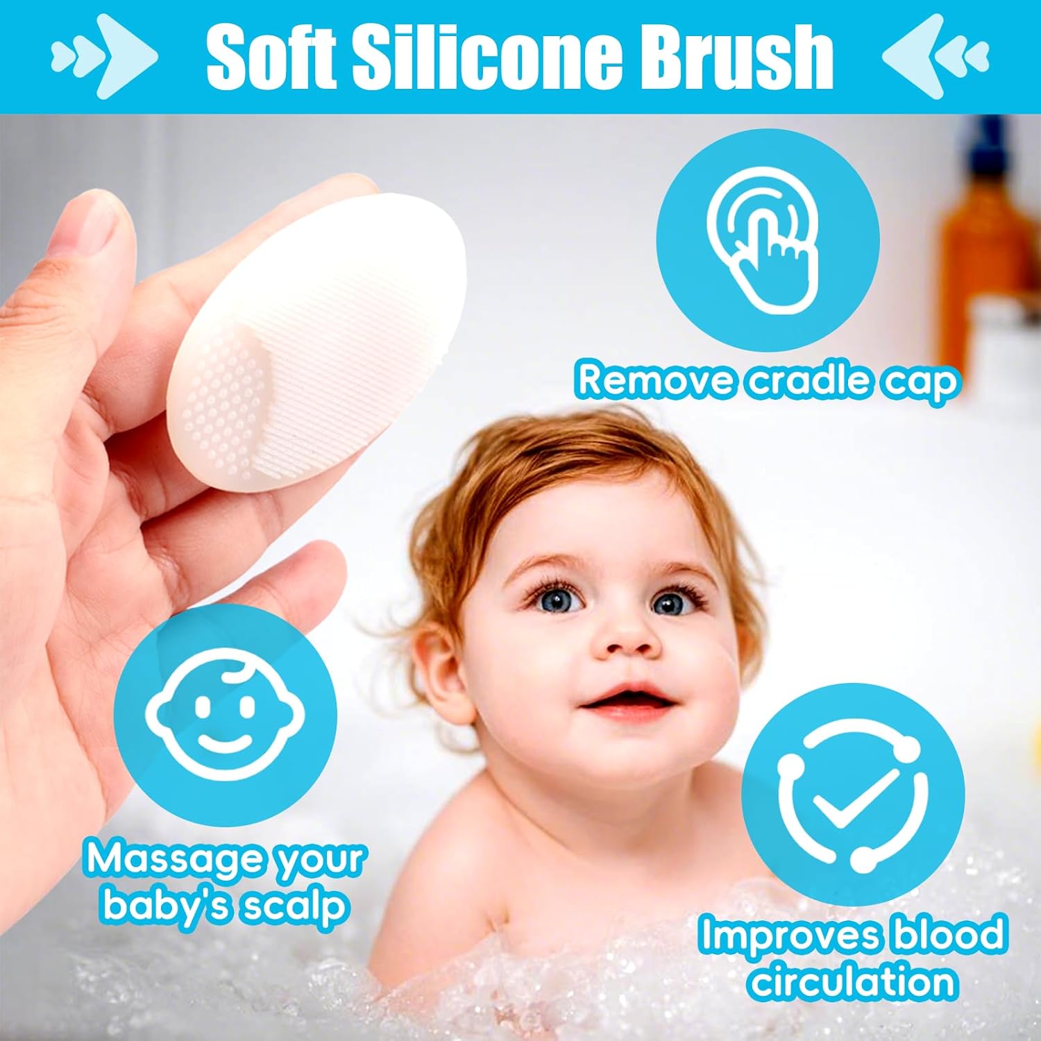 Complete Cradle Cap Solution: Featuring a silicone cradle cap brush, this baby brush set makes it easy to gently remove cradle cap while massaging the scalp and stimulating blood circulation