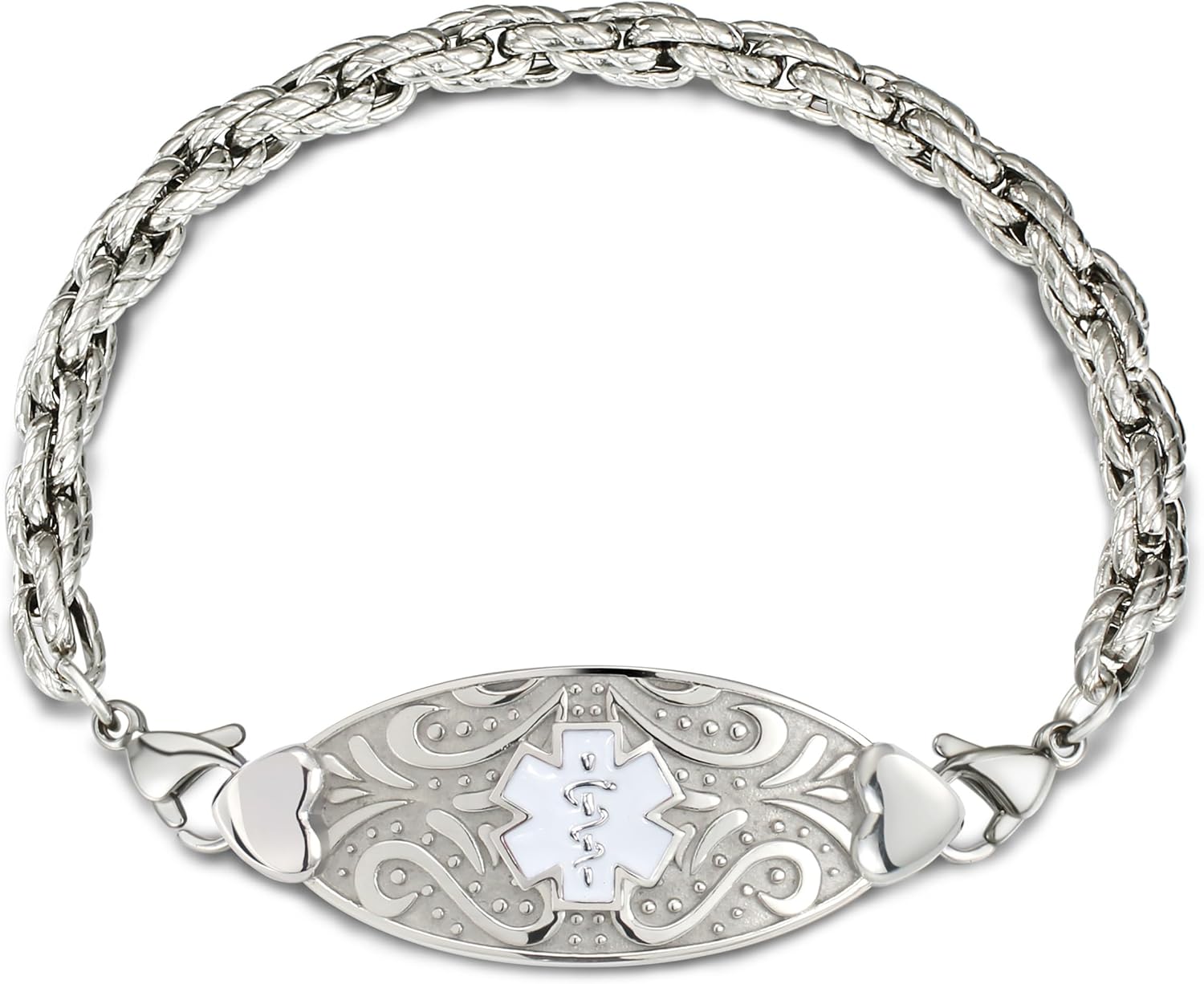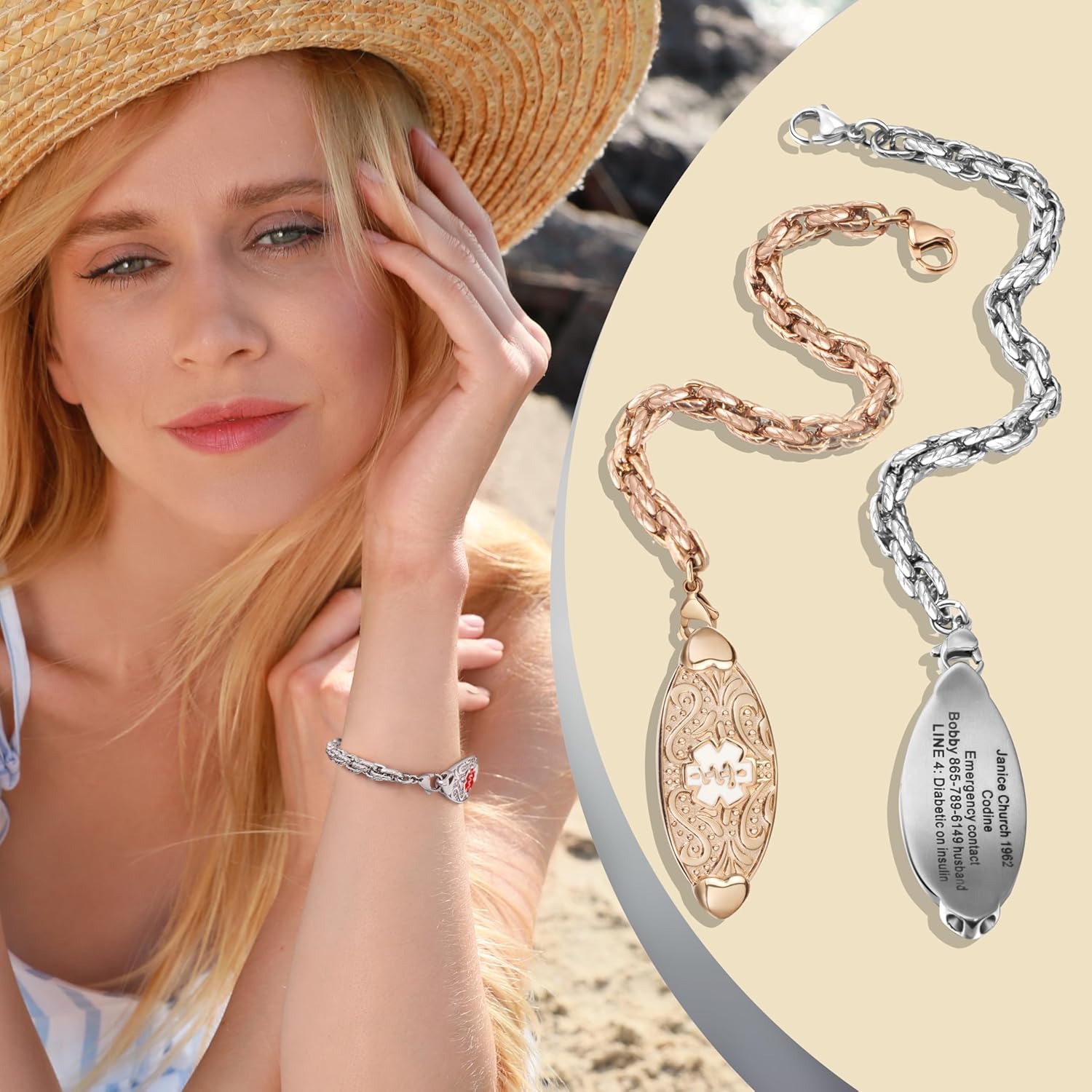 Custom Medical Alert Bracelet for Women with Free Engraving,Personalized Emergency Identification Bracelet Waterproof Diabetic Women’s Medical Alert ID Bracelet,6.0 to 9.0 Inches