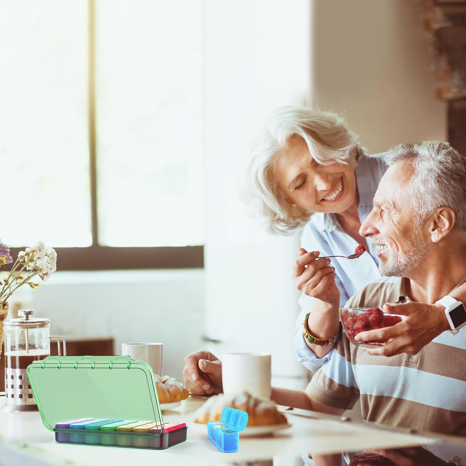 Daviky Pill Organizer 4 Times a Day, Weekly Pill Box Travel Pill Case, Daily Medicine Organizer 7 Day, Large Pill Container Holder to Hold Vitamins, Pills, Supplements (Green)