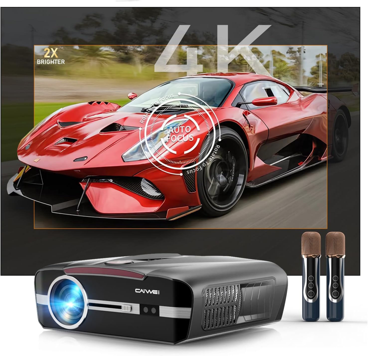 [Built-In Karaoke System with 2 Wireless Mics] The A9T karaoke projector includes dual wireless microphones and a built-in karaoke system, perfect for Friday sing-alongs or kids’ talent shows. No extra speakers or complicated setups—just connect via Bluetooth, and start belting out hits or holiday classics