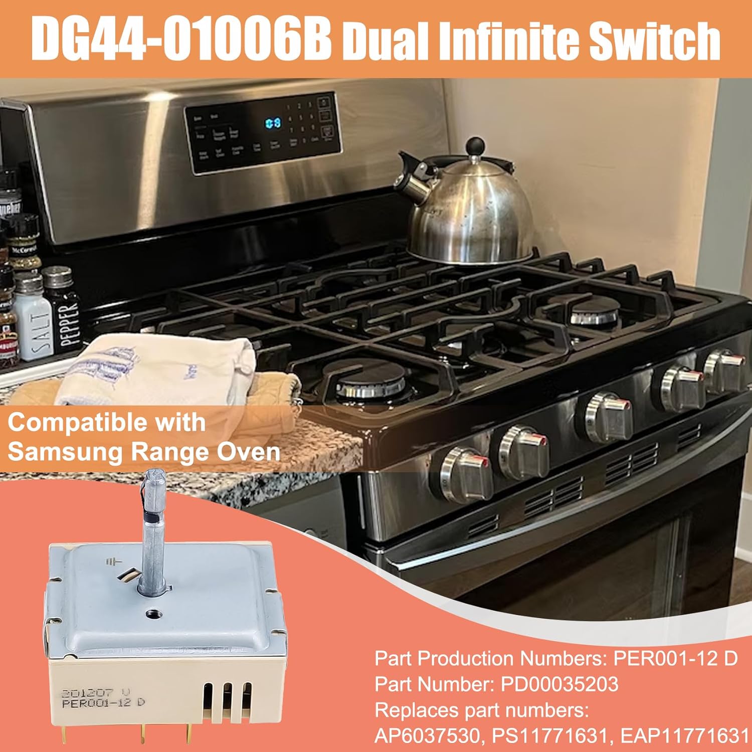 【Fit models】The dg44-01006b dual Infinite switch fits NE59K3310SB/AA-00,NE59M4310SB/AA-00,NE58K9500SG/AA-01,NE59K3310SS/AA-00,NE59M4310SW/AA-00,NE58K9430SS/AA-00,NE59M6850SS/AA-00,NE59K3310SW/AA-00,NE59M4310SS/AA-00,NE58K9850WG/AA-00,NE58K9850WS/AA-00,NE59M6850SG/AA-00,NE58K9500SG/AA-00,NE59M6850SG/AA-01,NE58R9431SG/AA-00