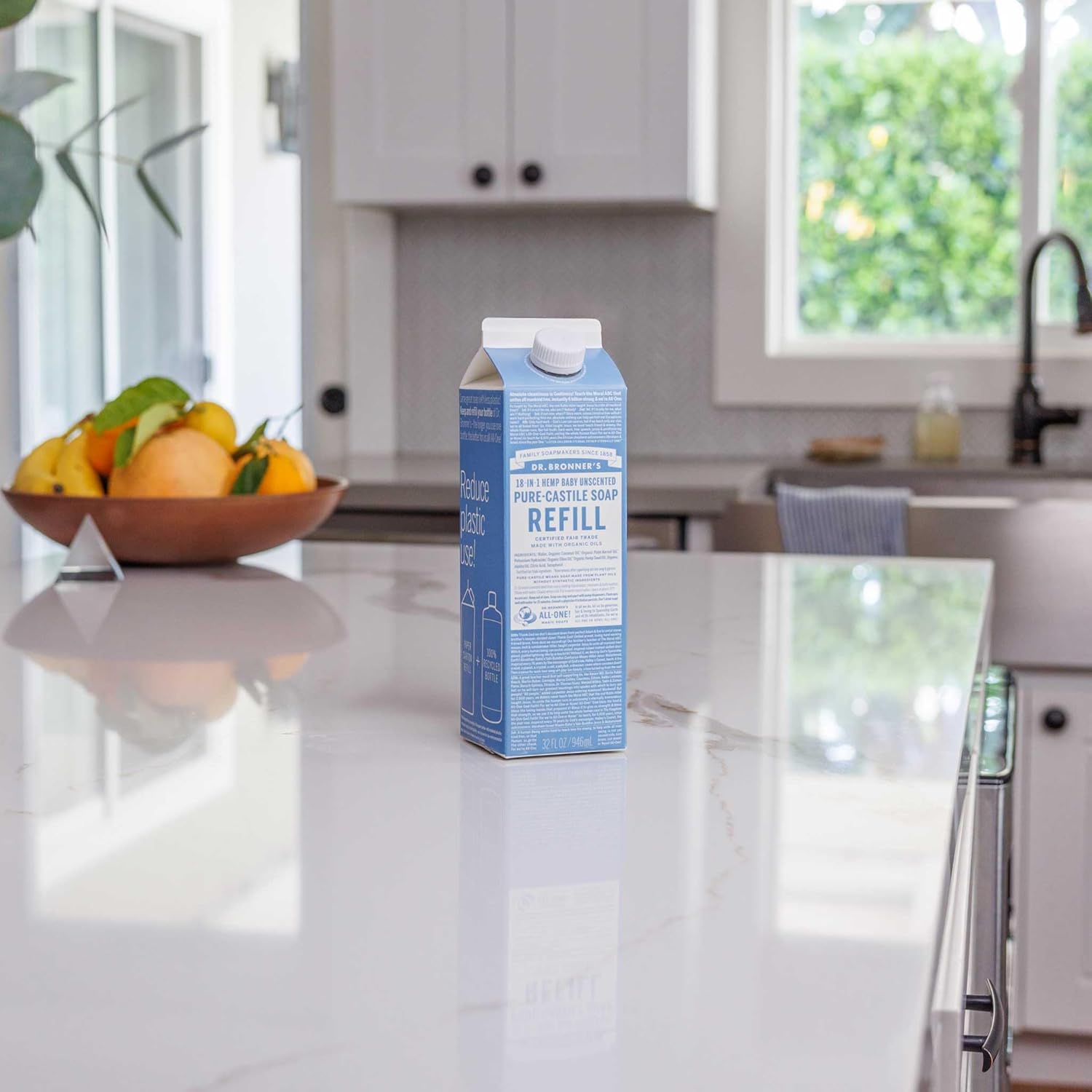Dr. Bronner’s Pure-Castile Liquid Soap Refill – Made with Regenerative Organic Certified Oils, 82% Less Plastic – 18-in-1 Uses, For Face, Body Wash, Hand Soap Refill & More – Baby Unscented, 32oz