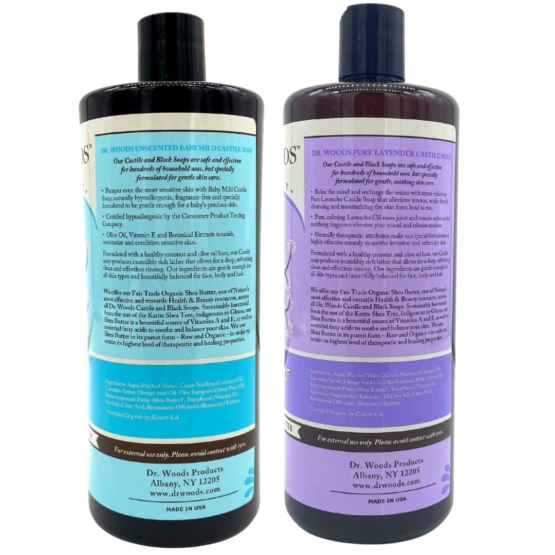 Dr. Woods Baby Mild & Lavender Castile Soap, Body Wash with Organic Shea Butter Variety 2 Pack