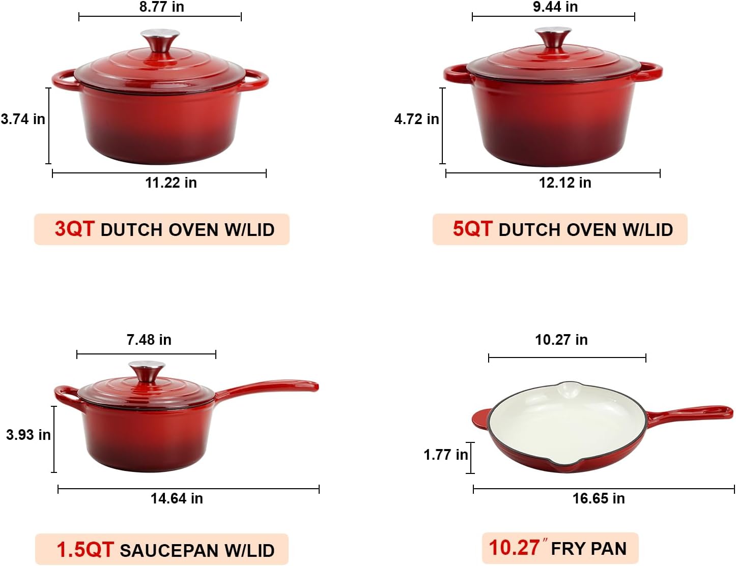 Complete 7-Piece Set: Include 10.27″ fry pan / 3 quart wok with lid / 1.5 quart saucepan with lid / 5 quart casserole with lid from family dinners to holiday feasts.