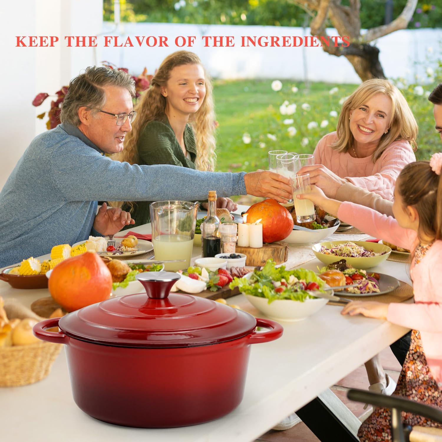 Even Heat Retention: Cast iron construction ensures consistent heat distribution for perfectly seared meats, soups, and baked dishes.