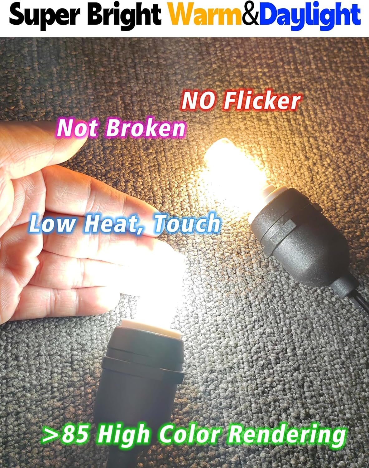 Fast heat dissipation , High color rendering index CRI>85ra, provides vivid and warm color.Dimmable, no flicker, no buzzing, not break when using it.Low heat, long lifespan up to 25000hours, reducing bulbs replacing frequency, reduced your daily electric costs.