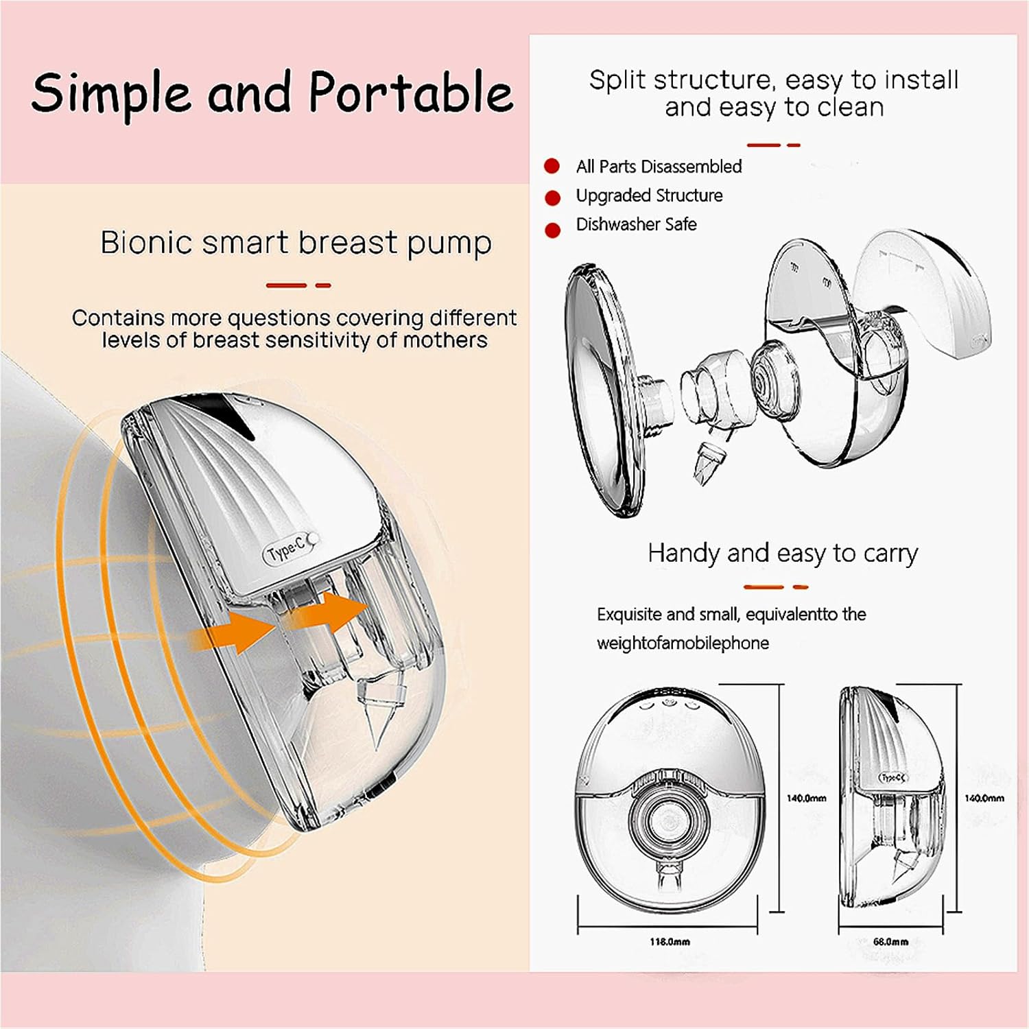 【Ultra-Lightweight & Portable】 Weighing only 240g (per unit), this compact pump fits comfortably in one hand. Perfect for travel, outdoor activities, work, or home use—empowering busy moms to pump anytime, anywhere