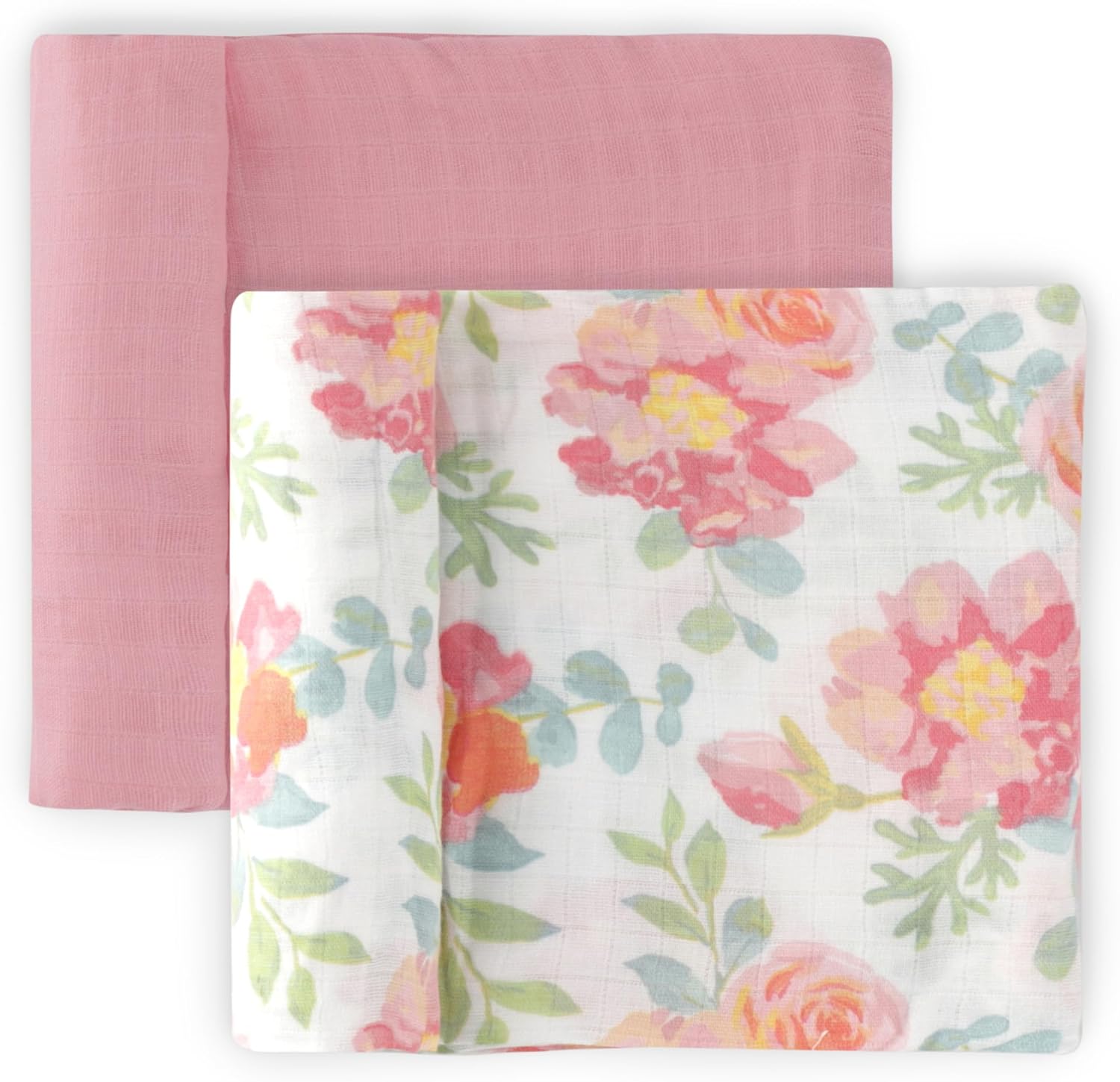 Featherhead™ 100% Cotton Muslin Swaddle Blankets for Baby Girl – Large 47”x 47” – Pre-Washed, Soft, & Breathable – Newborn Essential & Perfect Baby Registry Gift (2 Pack – Garden Floral)
