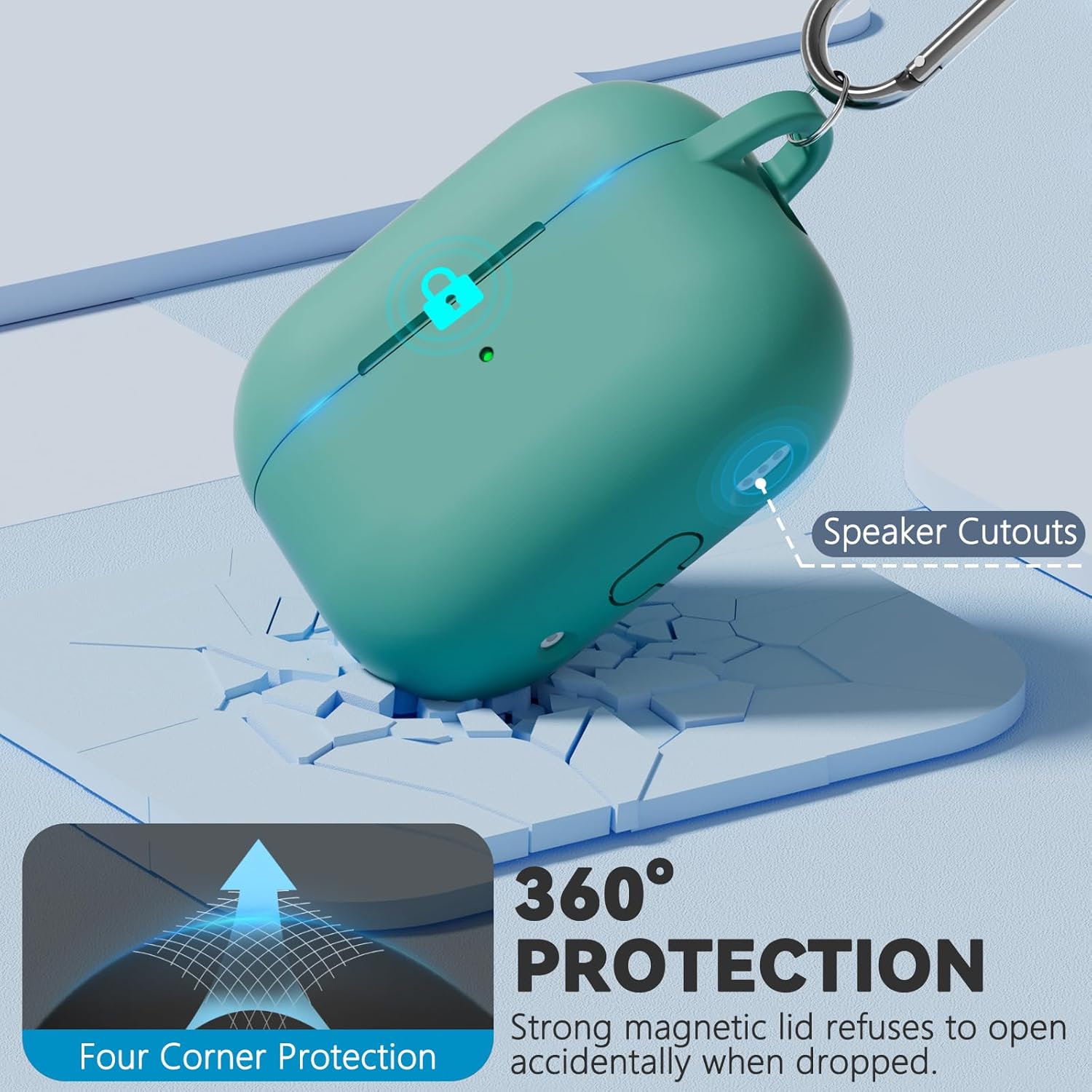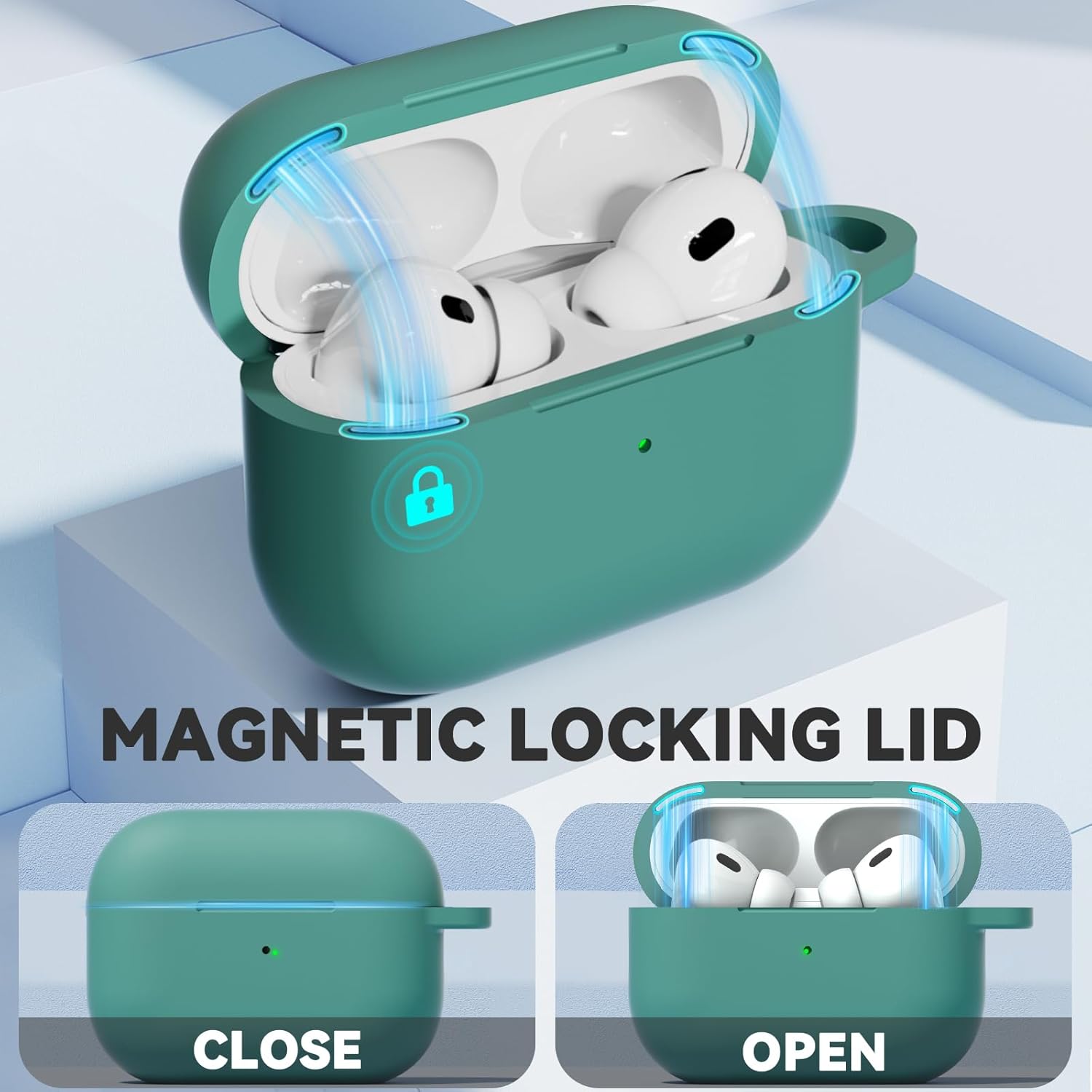 Soft silicone case with magnetic Lid Lock,Strong magnets makes it easier to open and close,Airpods case will not open accidentally even when dropping.