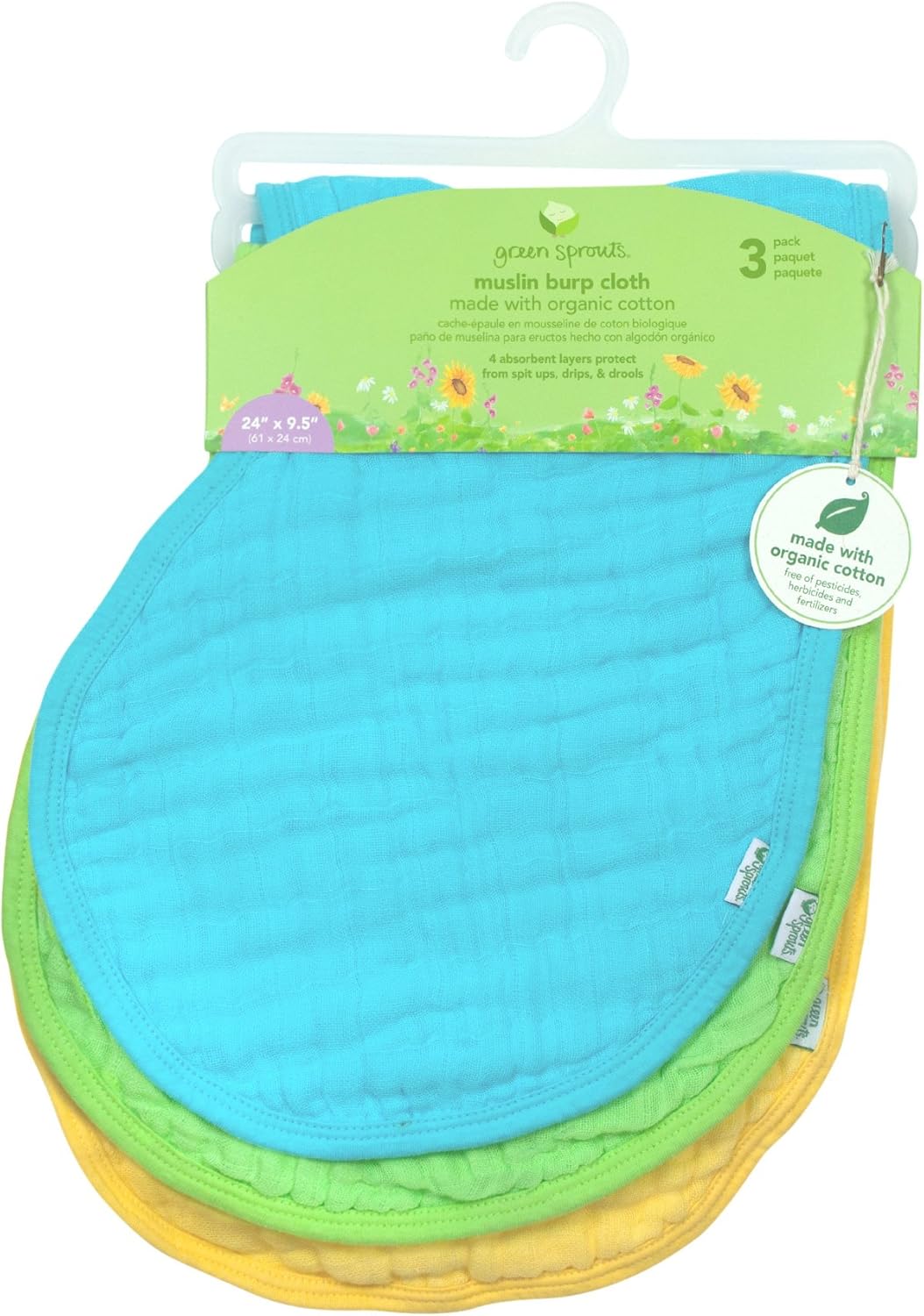green sprouts Muslin Burp Cloths made from Organic Cotton | 4 absorbent layers protect from sniffles,drips & drools | 100% organic cotton muslin,Super soft & softer with every wash,Machine washable