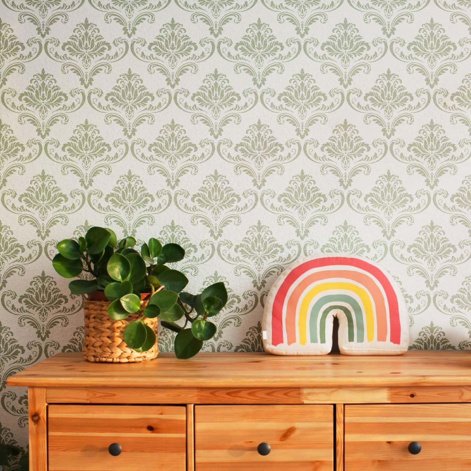 Wall Stencils for painting are a more affordable alternative to custom walls than wallpaper. You can customize your DIY wall decor with your favorite combination of paint colors and wall stencil patterns.