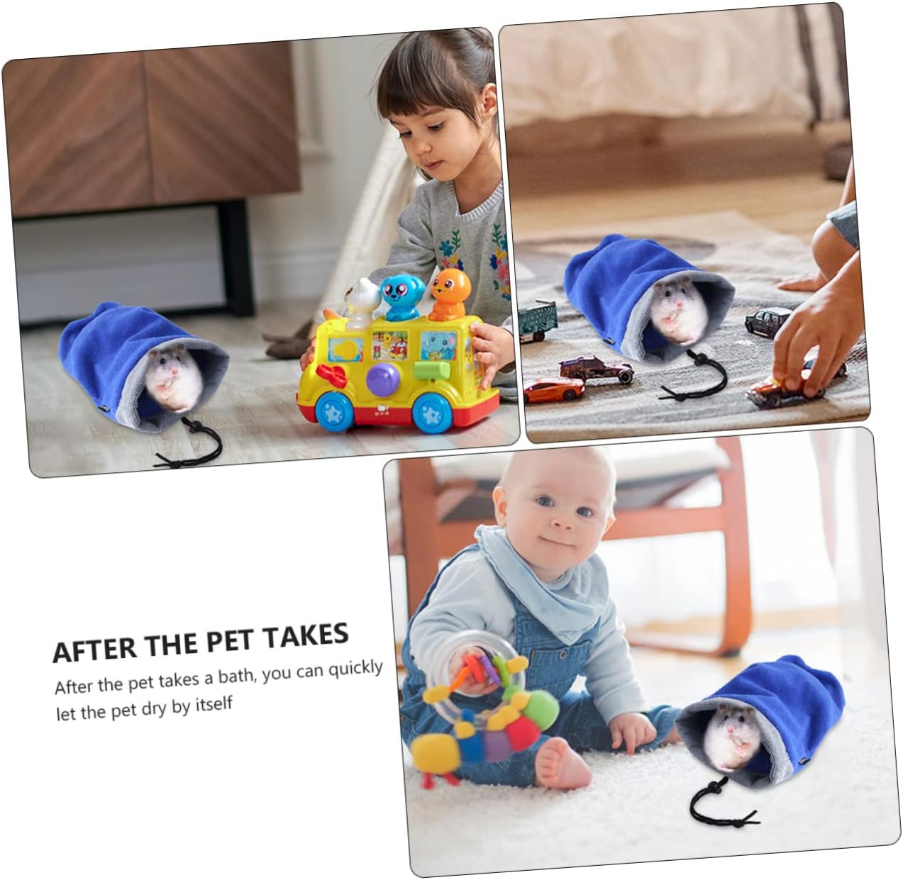 HAMSTER TOWEL– This kind of pet bath towel bag is very absorbent, make it so easy to dry hair.